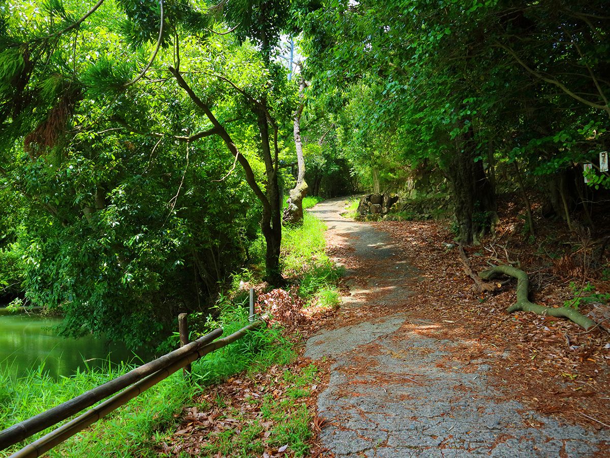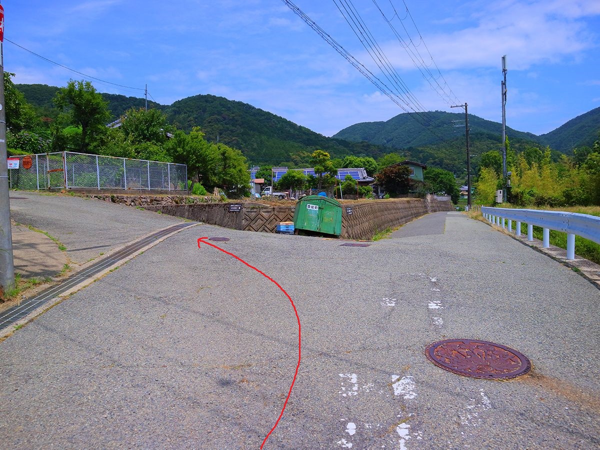 右へ曲がったら手前の階段を登るのではなく奥の道を左へ曲がって進んでいく