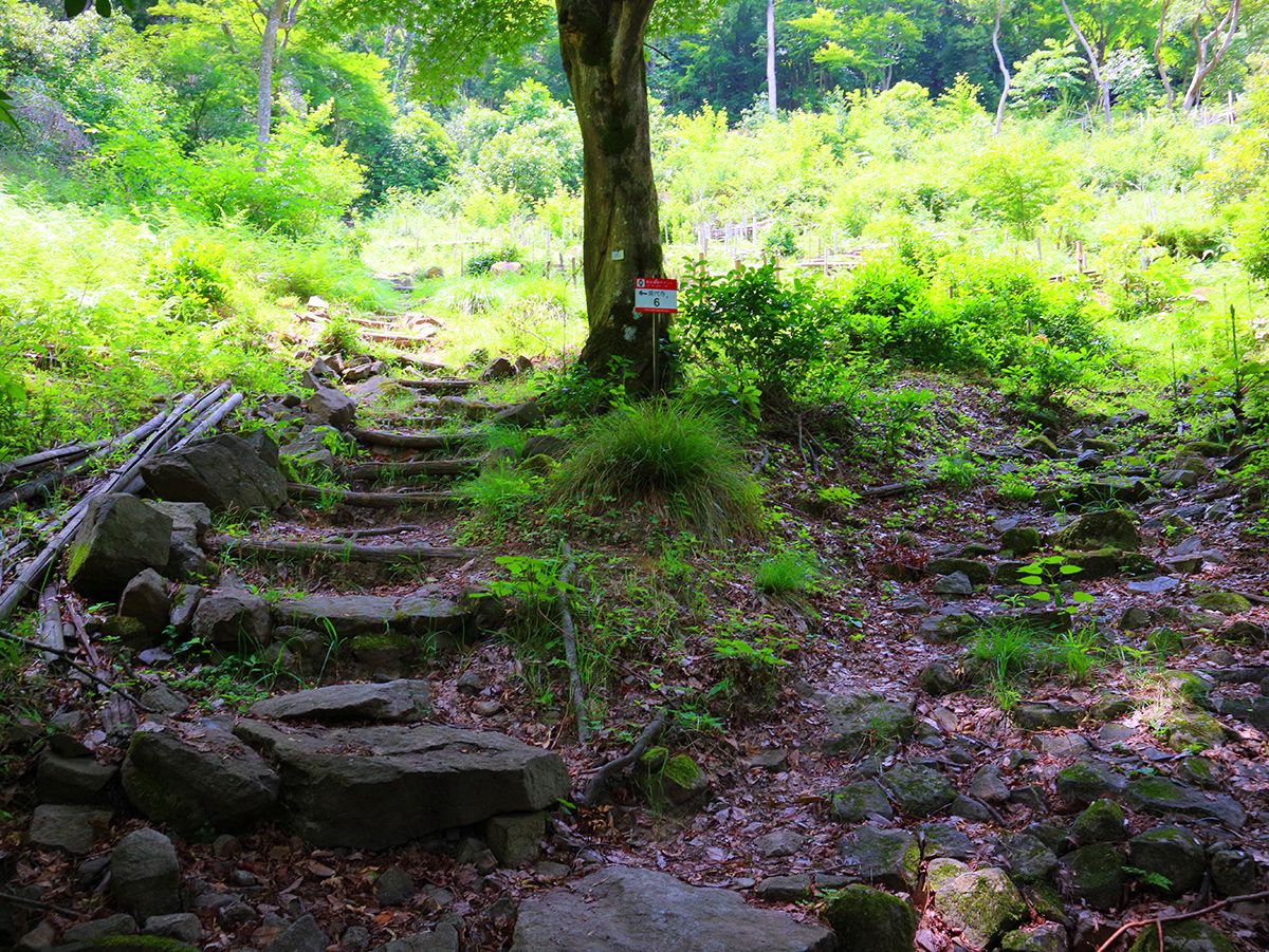 通報ポイント6番。石の階段続きでペースが乱されてるけど、ここまでくるとあともう少しで道路に出る