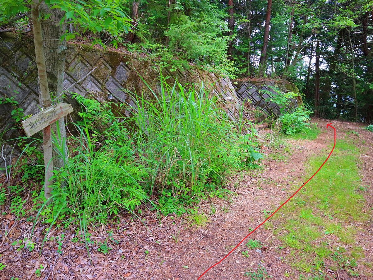 ここで右のNTTドコモの無線中継所のほうへ上がっていく