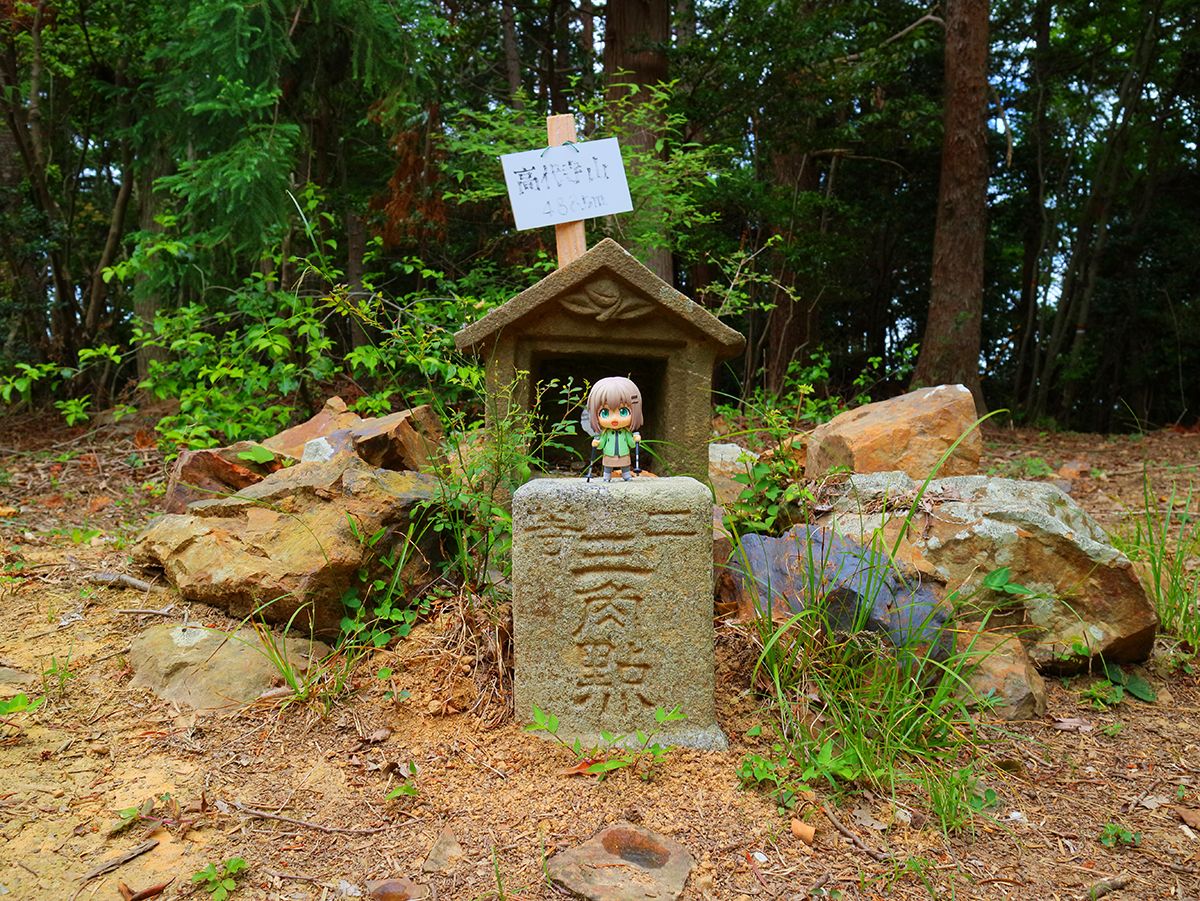 ここを右へ曲がる。曲がり角に古い道標チックなプレートがあって、わずかに高代寺山山頂と書かれていた