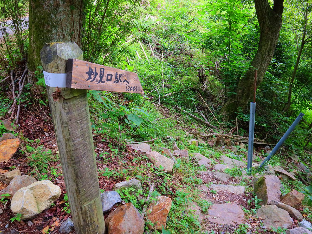 妙見口駅から道路を左にあがって行く。高代寺コースの道標に従っていく
