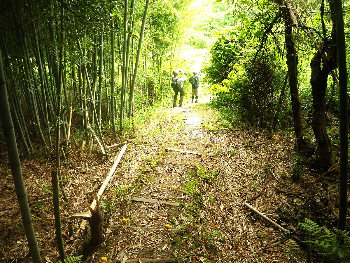 再び登っていくと綺麗な竹林地帯になった。なんか竹林が多い山だね