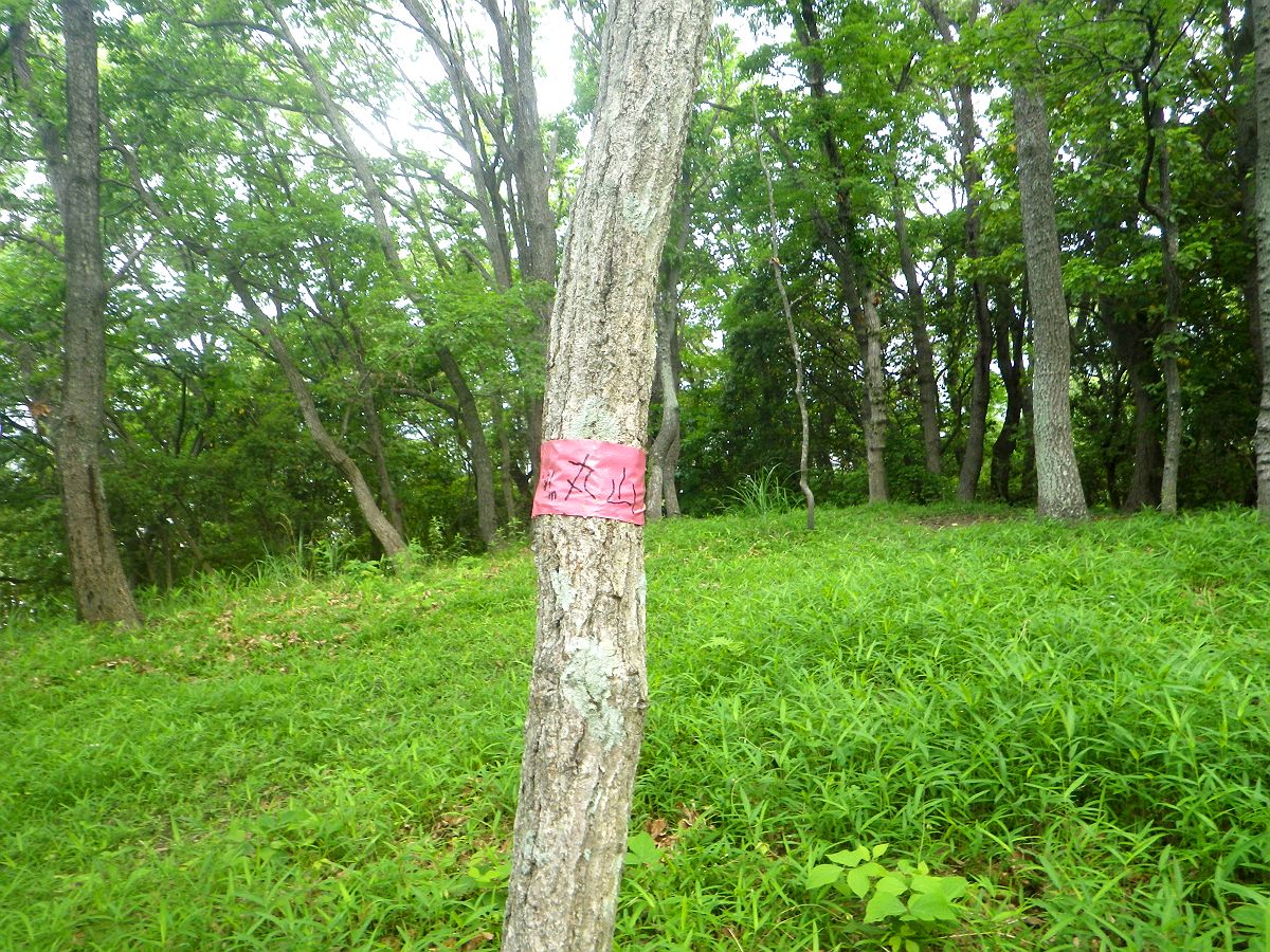 丸山のピークに登ったがプレートなどなく、テープに書かれたこの表記しかなかった