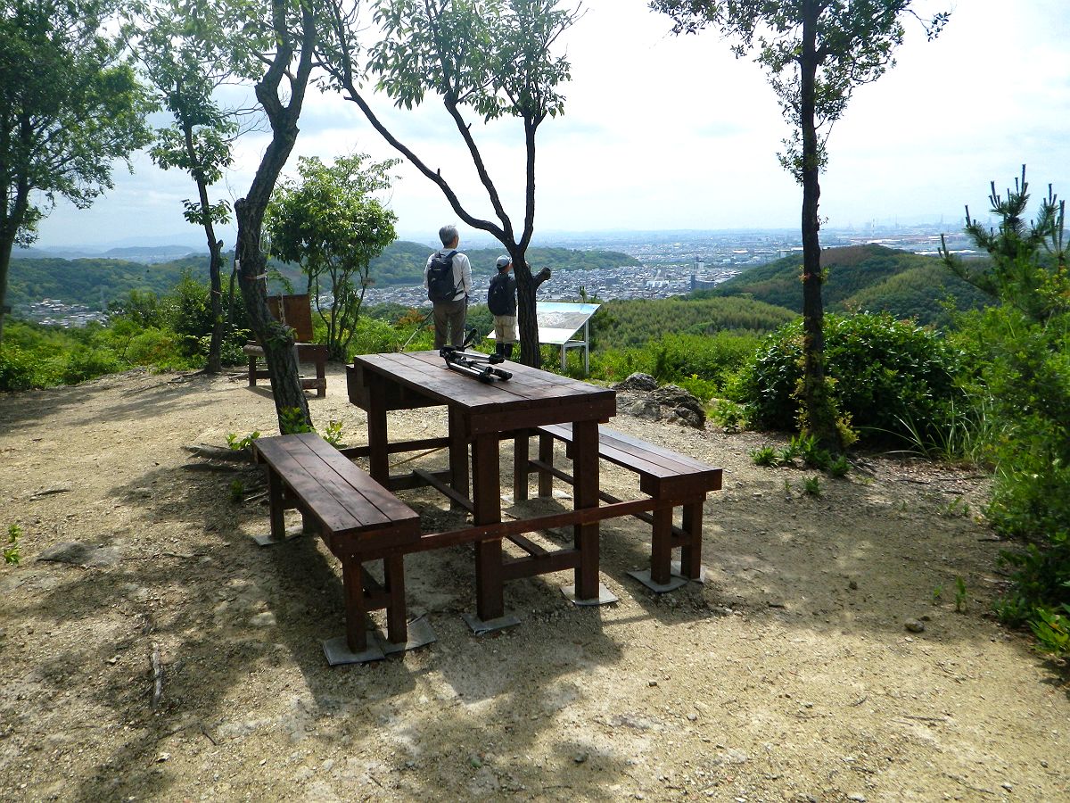 高坪山の山頂に到着。立派なベンチがあって展望もある