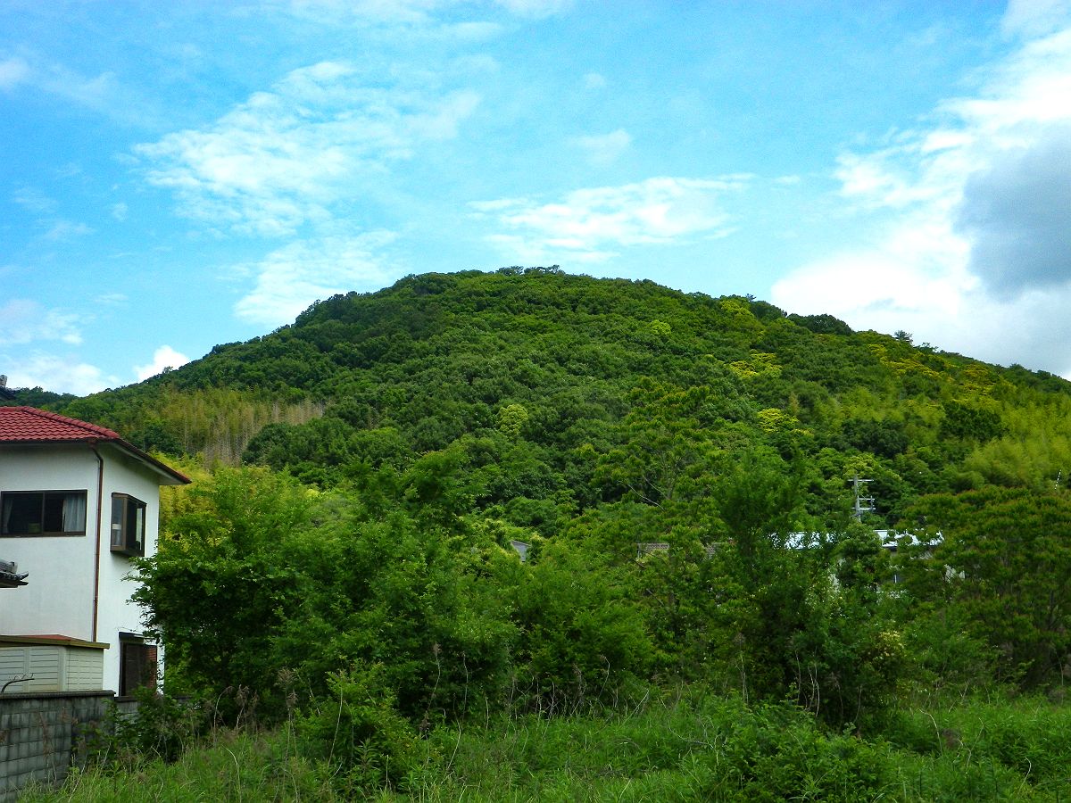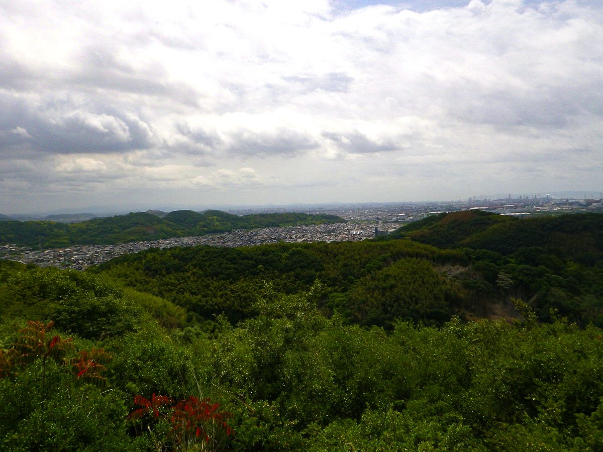 さっき登っていた坂の山がよく見える。下から見ると丘という感じもするけどね