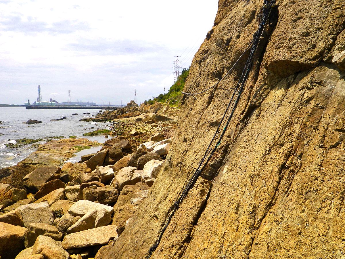 ロープが設置されているけど今回は干潮時だったので不要だった。とはいっても満潮時にこの岩場を歩けるとは思えないんだけどね