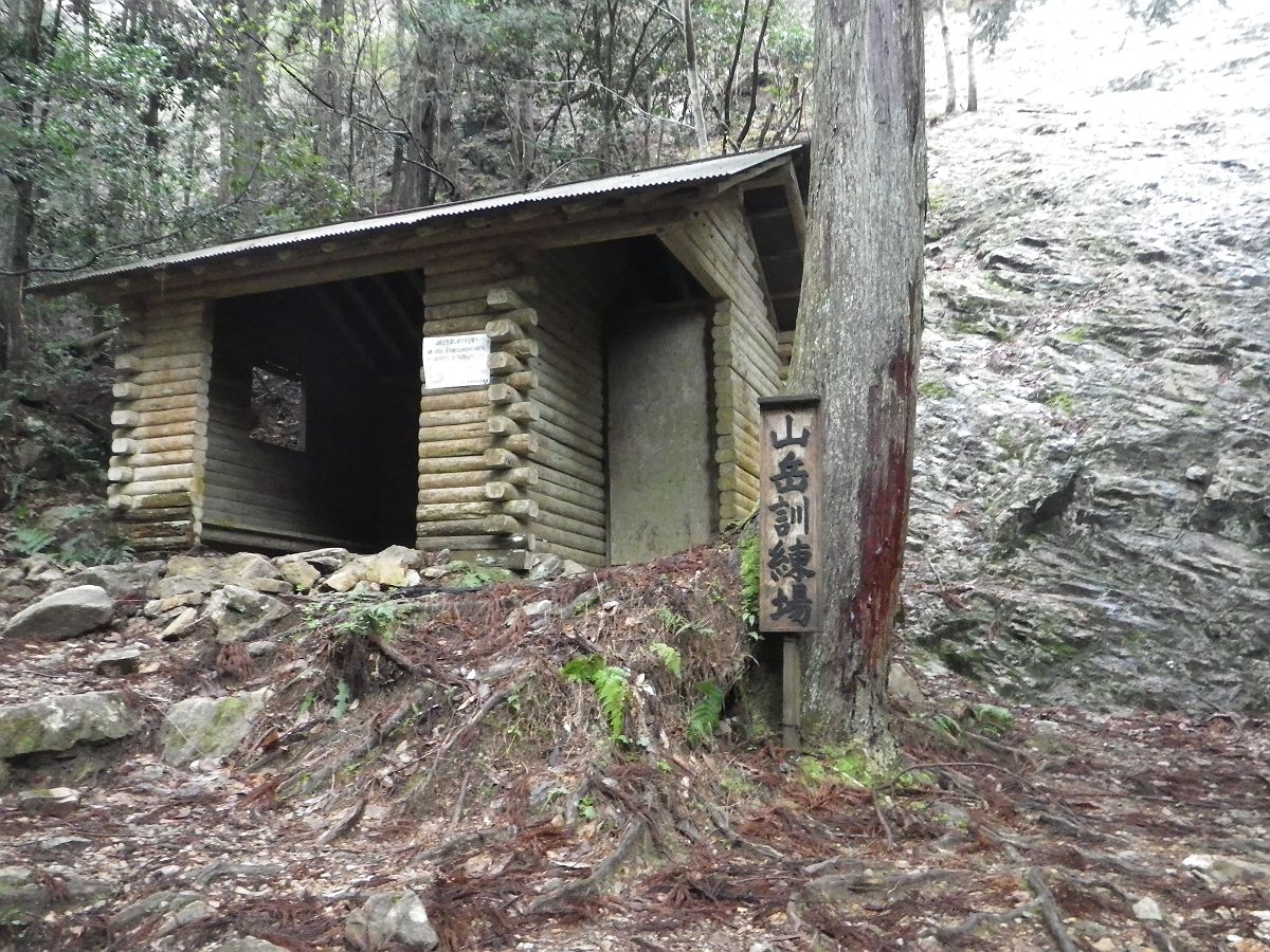山岳訓練場らしいけど小屋は使ってもよさそうだったので、下山時にここで休憩した。警察の訓練場らしいけど右側の岩場を登るみたい。下山時にクライミング装備の人がいた