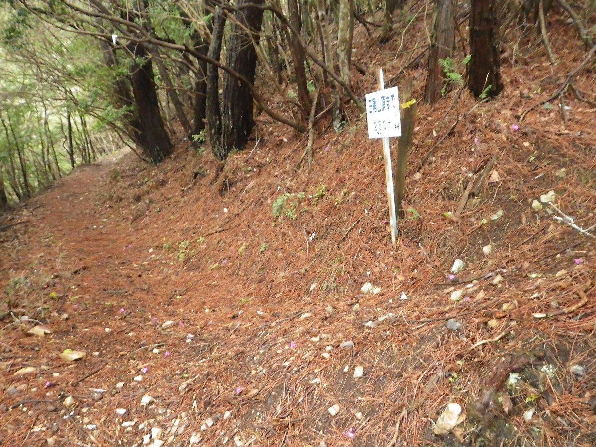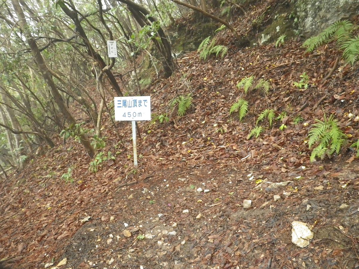 この三尾山頂まで250m地点で西峰のピークハントをするので右側のピークへ登っていくことにした