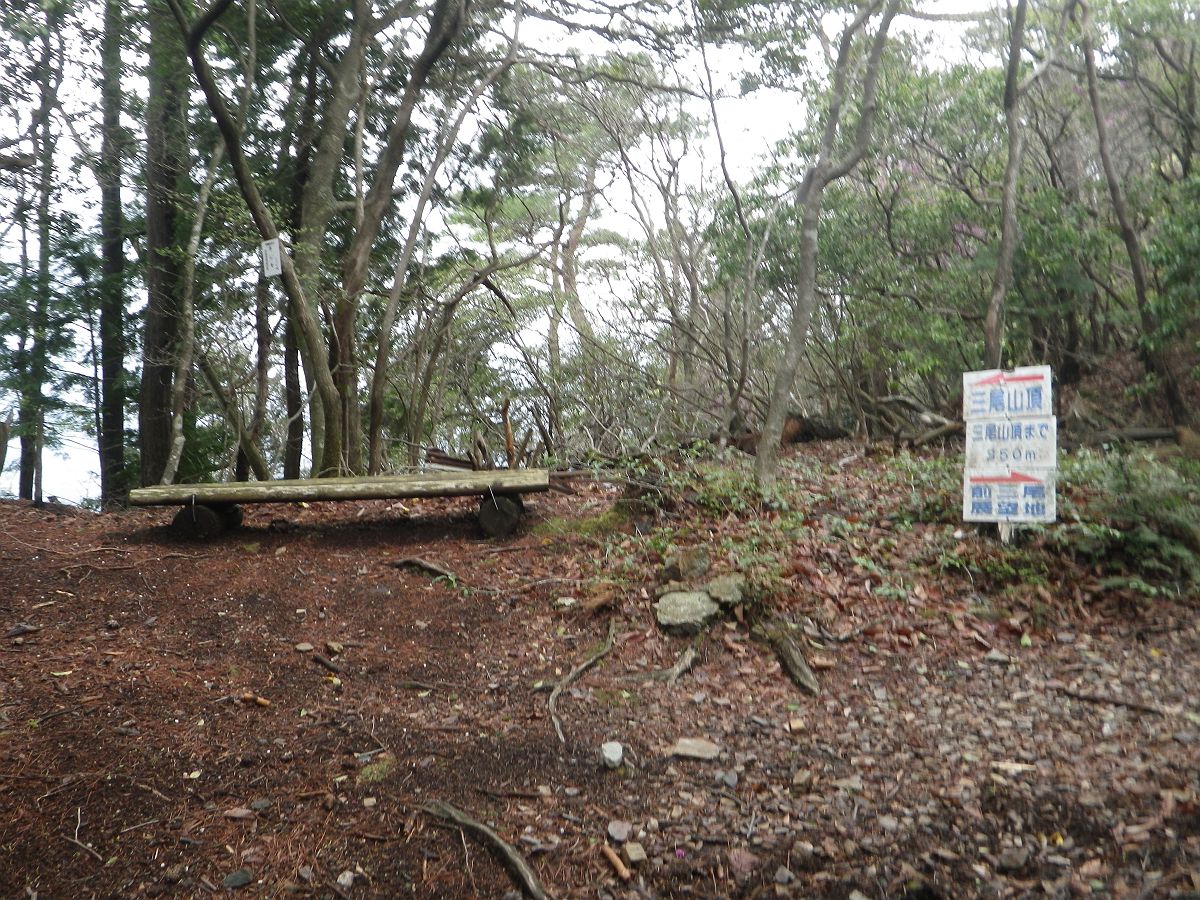 稜線まで登ってきた。ベンチに座って少し考えた結果、先に右手の前三尾山(東峰)へ登ることにした