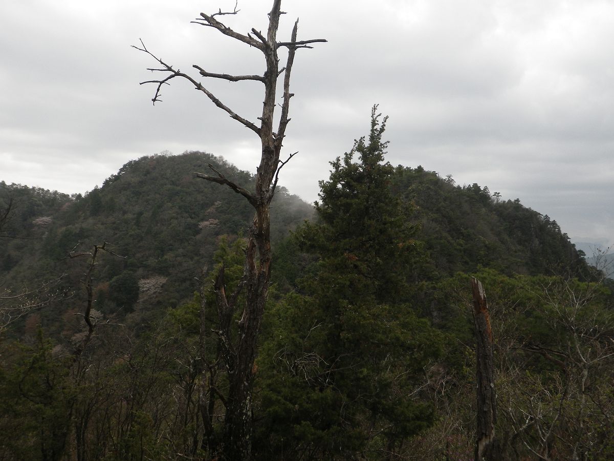 三尾山西峰(552m)に到着。ここは展望も何もない。ただ、自己満足するためのピークハントとなった