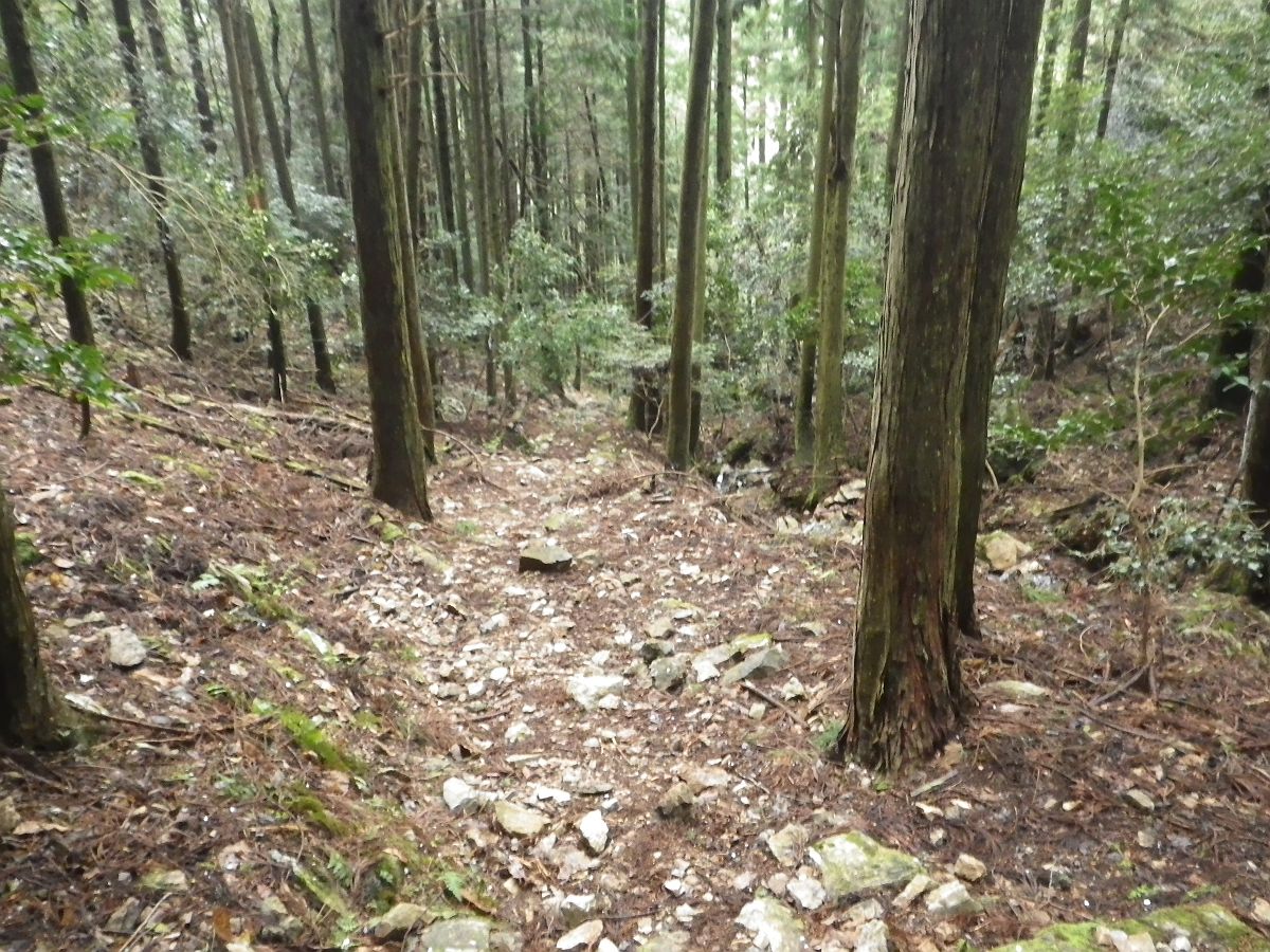 三尾山頂まで750m地点まで登ってきた。そろそろ急登がはじまると地図を確認すると予想通りだった。ここから三尾山頂まで350m地点の稜線に出るまでちょっとした急登が続く