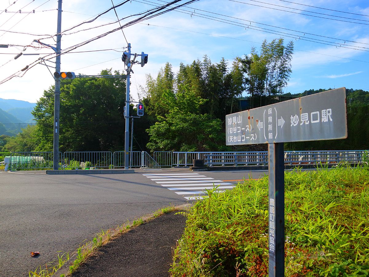 国道477号線に出たら横断して真っすぐ進んでいくと妙見口駅にたどり着く