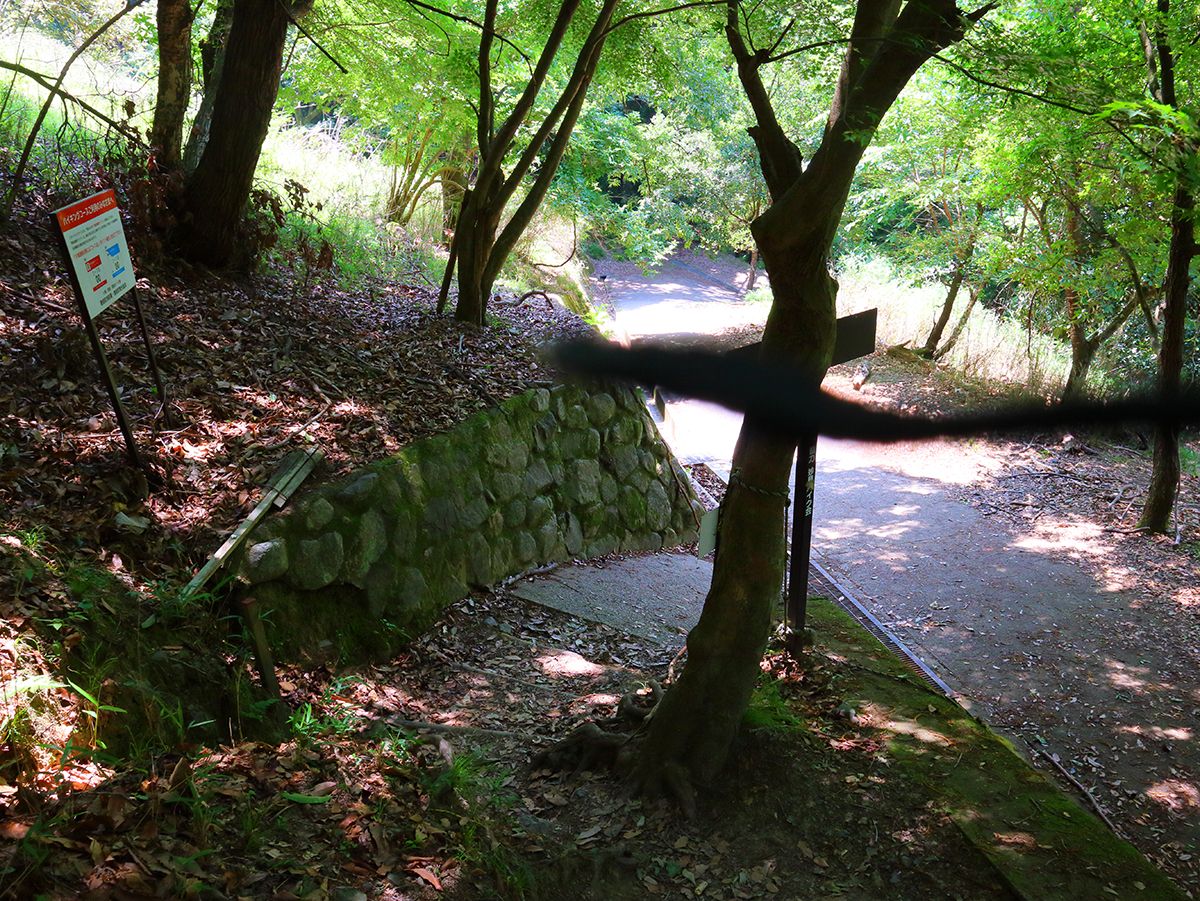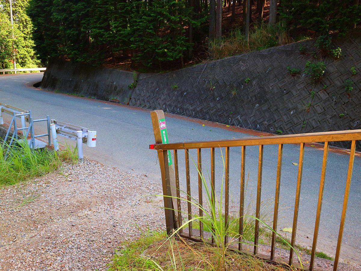 ここで分岐。直進すると違うところに行ってしまいそうなので左側を道路のほうへ下っていく