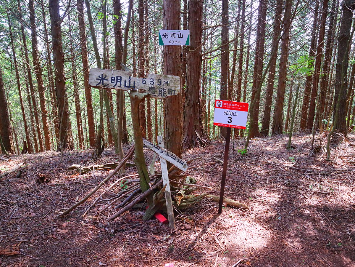 光明山山頂(639m)に到着。天台山もそうだったけど山頂は何もない。ただのピークハントをしているだけ