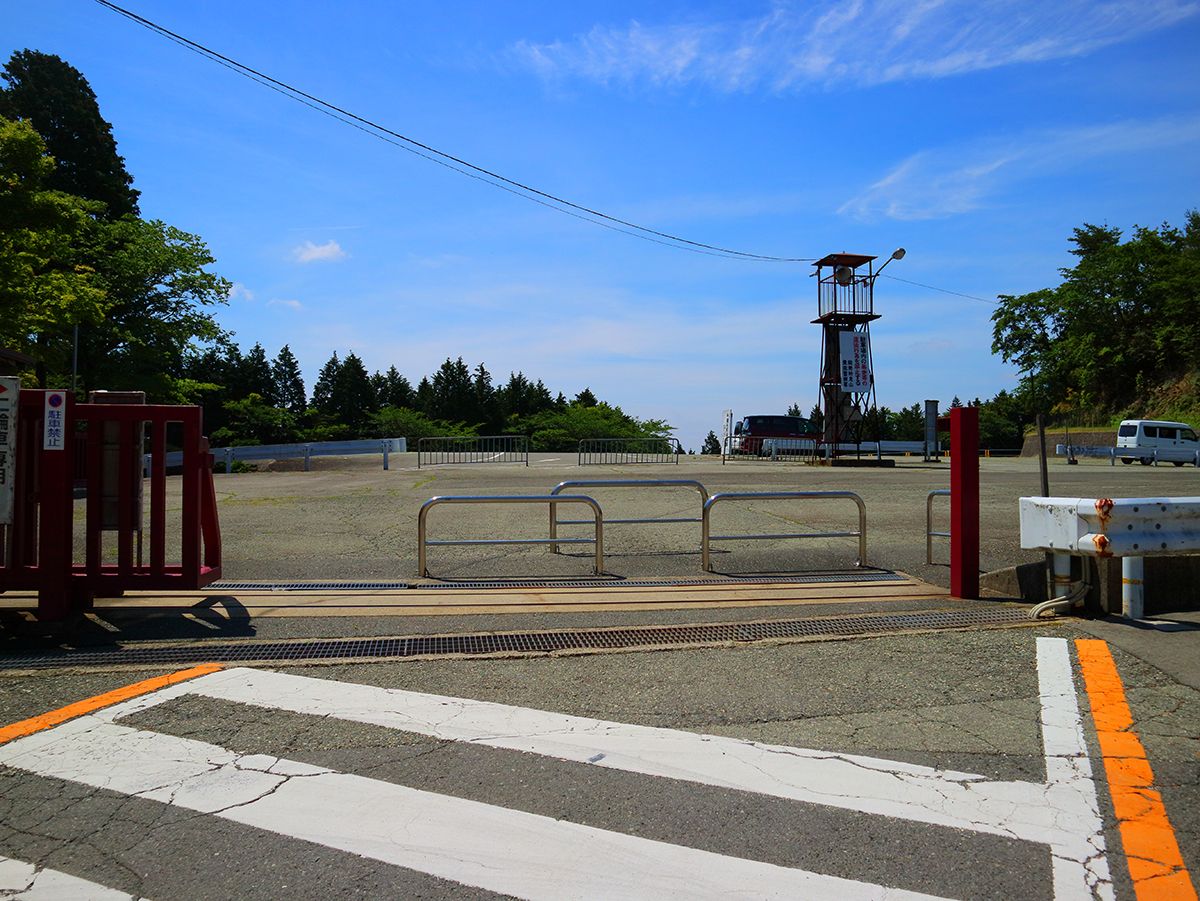 妙見山上駐車場に入って行く。上杉尾根へ下りはこの駐車場の奥にある