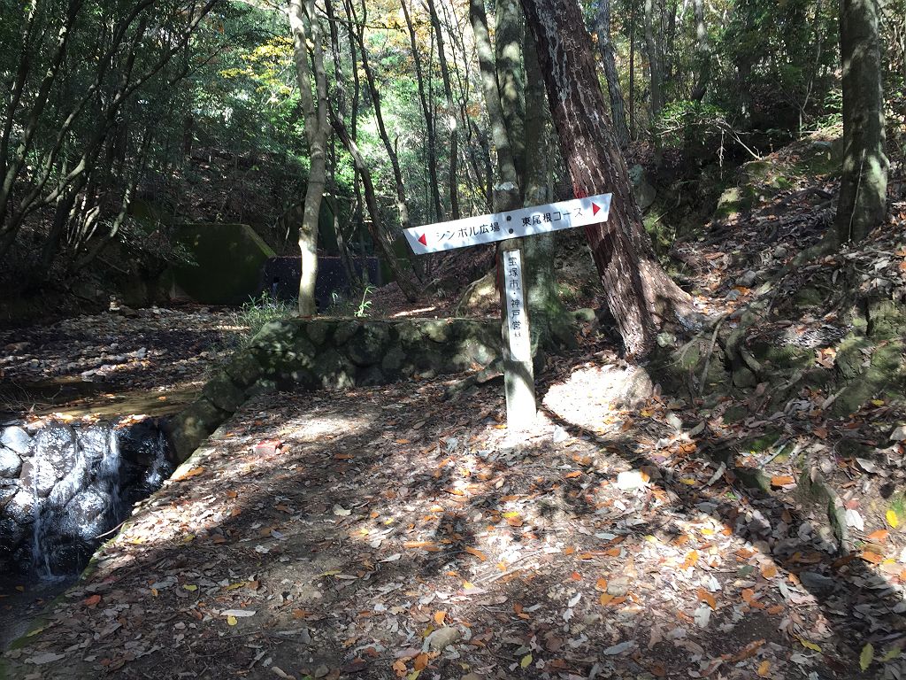 ここで分岐。東尾根コースは天宮塚のほうにいってしまうので左のシンボル広場のほうへ行く