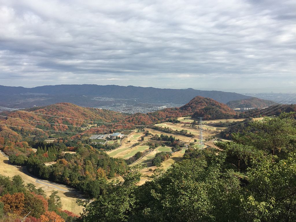 ゴルフ場とその向こう側は五月山、六個山など箕面の山々が見えた