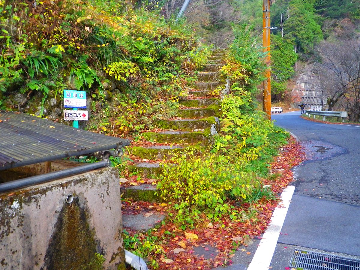 変なところだけど、ここに藤川谷の登山口があるので階段を登っていく