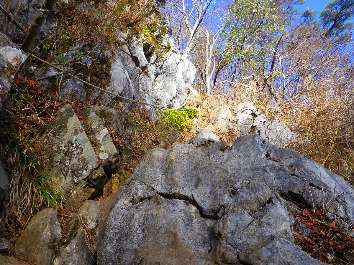 岩場だけどロープを掴まなくても普通に登っていける。ただし、下りはちょっと面倒かもね