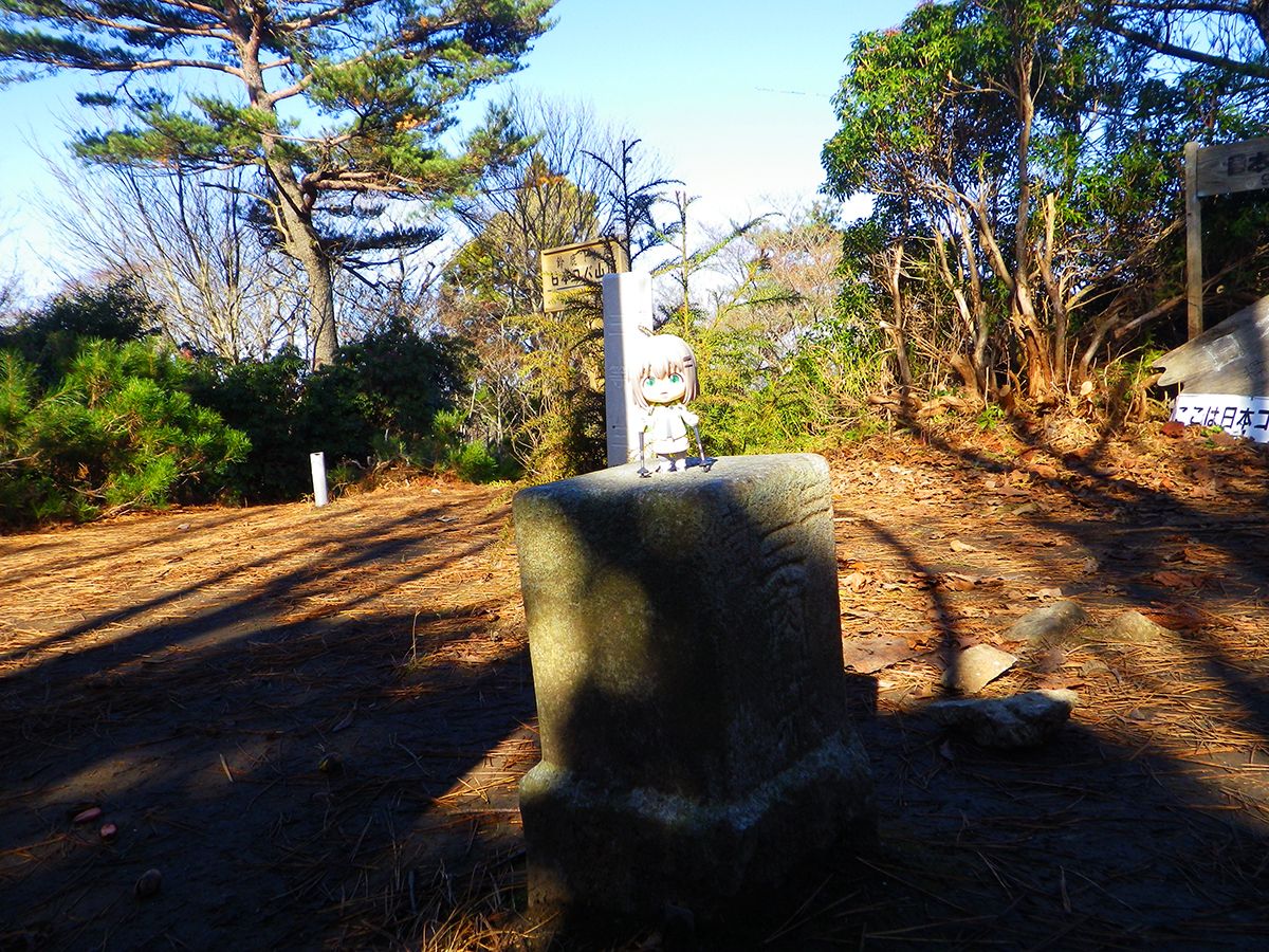 山頂三角点と雪村あおいちゃんを撮影しておいたけど、光の加減が難しい