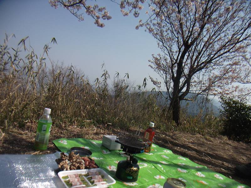 山頂で花見をする。本当はビールとか飲みたかったけど車の運転があるし無理だった