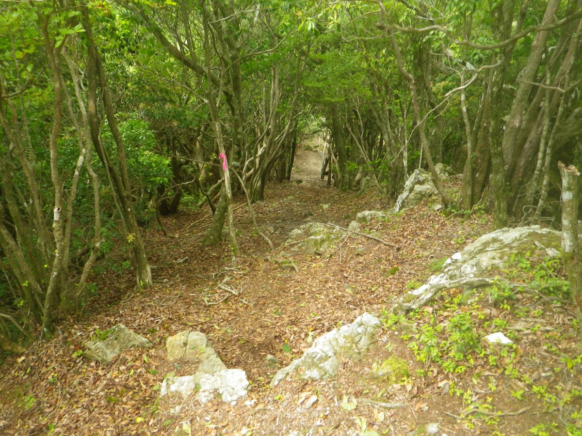稜線に合流した地点からまずは下らされる。標高的にはそこまで下らされてないけど、登り返さないといけないんだよね