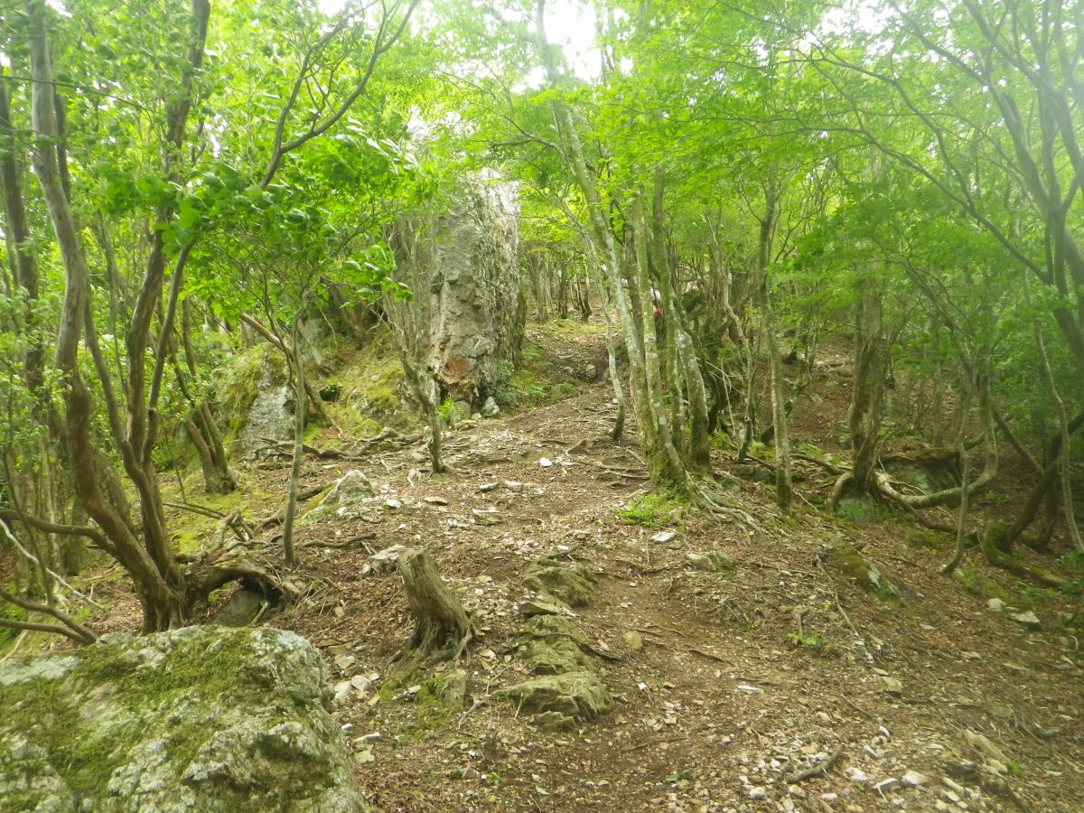 やっと稜線に合流した。御嶽もだったけど上のほうになると岩場になってるんだよね