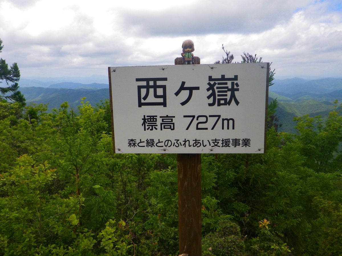 やっと西ヶ嶽の山頂(727m)に到着。天気予報は晴だったけど、この付近は曇っていた