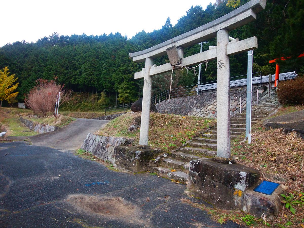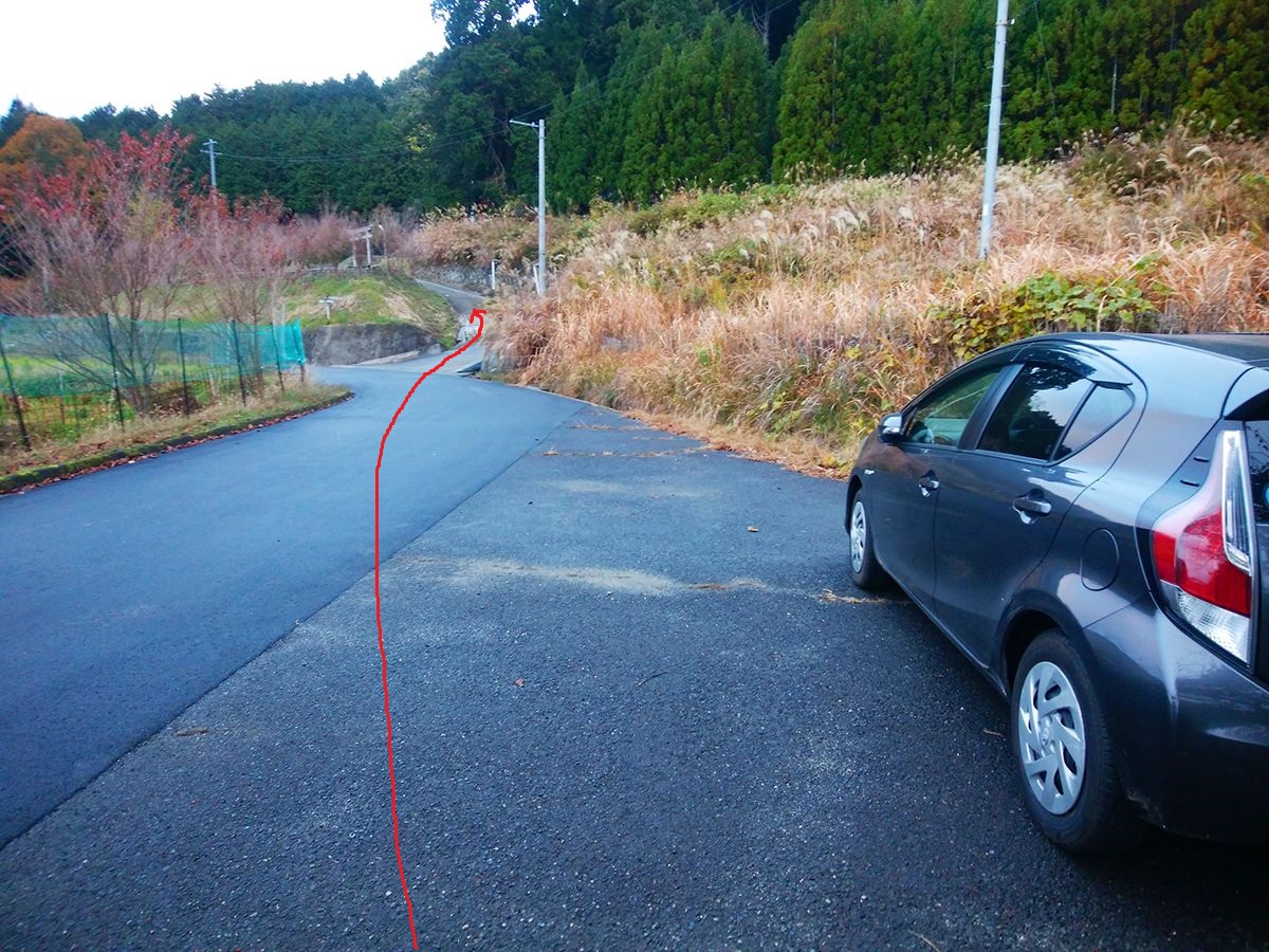 この広くなった路肩に駐車してスタート。鳥居のほうへ登っていく