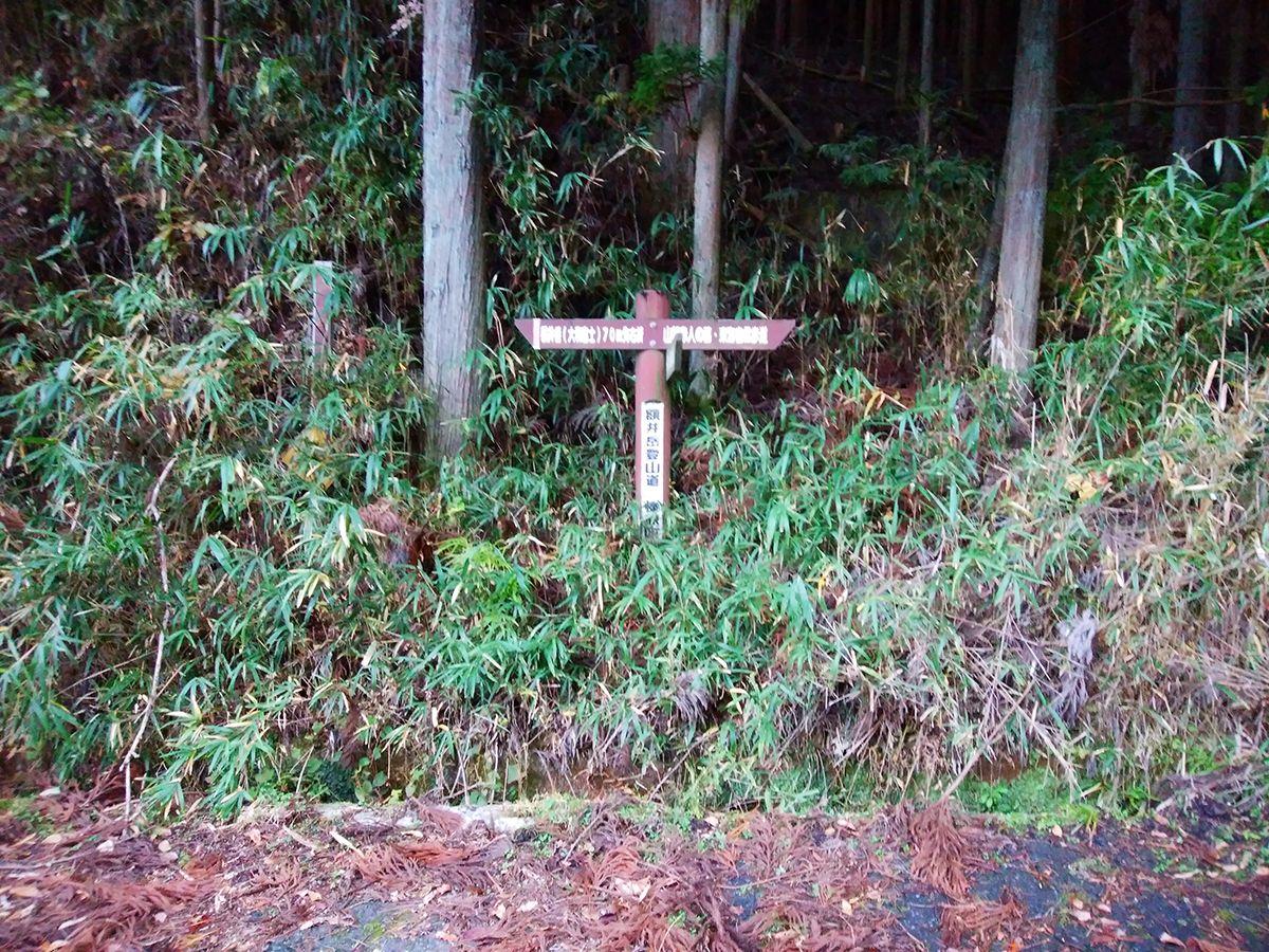 ここでちょっとだけ舗装道に出る。道標がしっかりあるので従って左の大和富士のほうへ行く