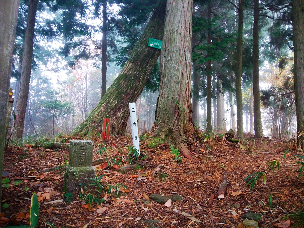 額井岳(812.3m)の山頂と三角点