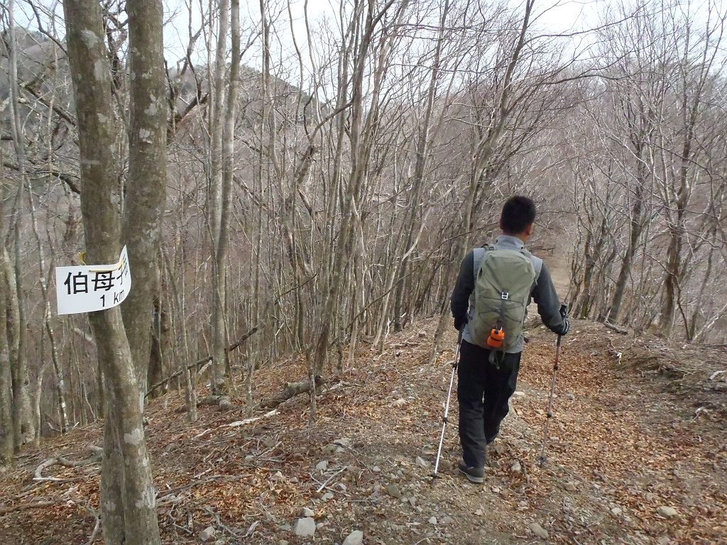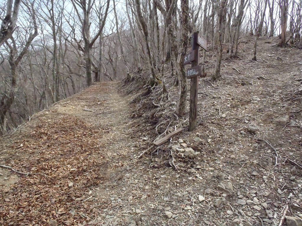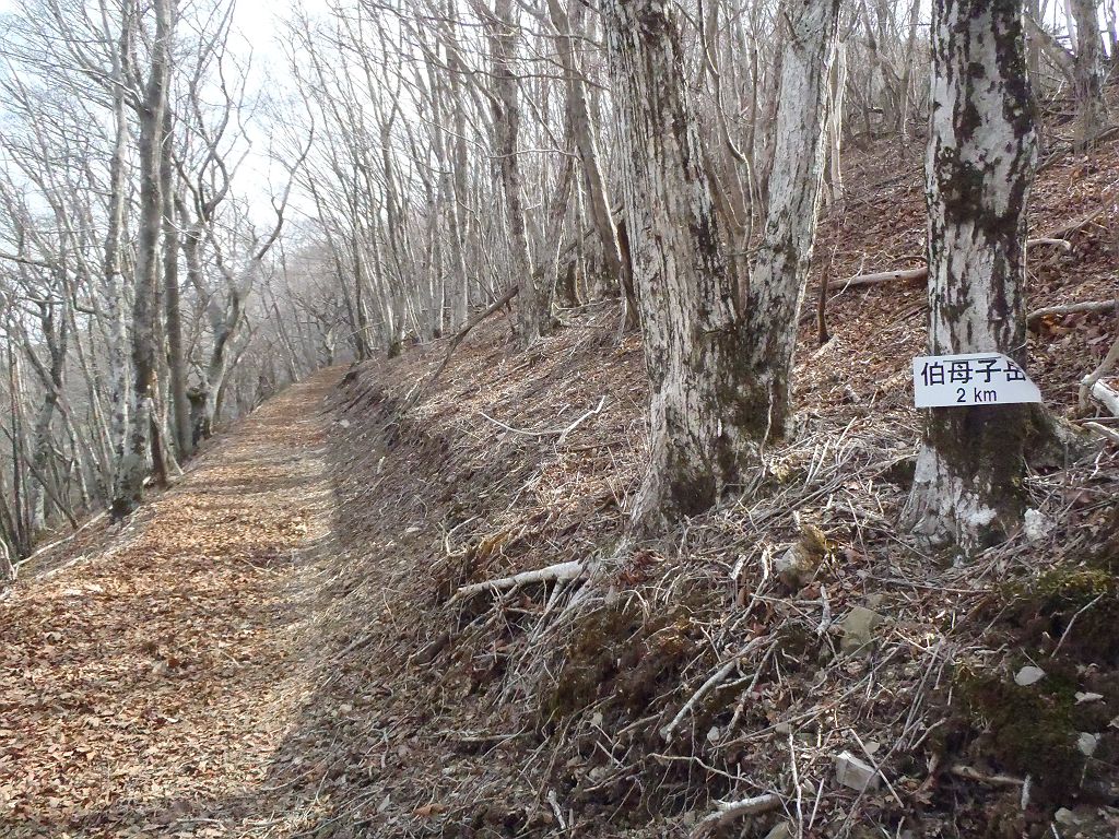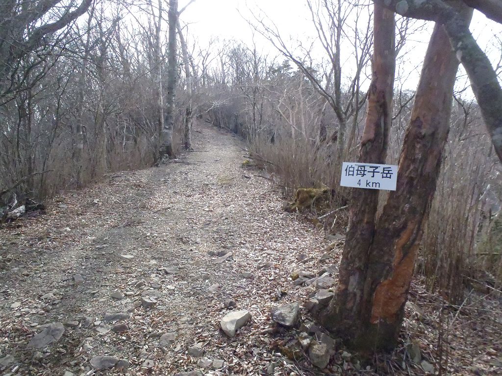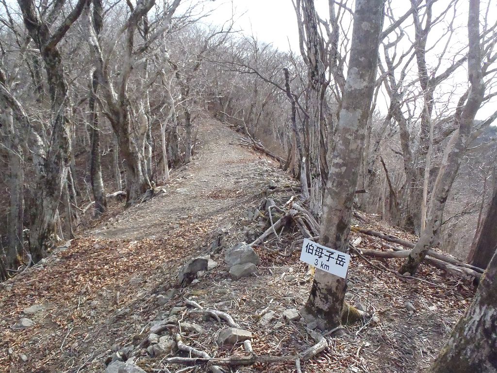 ここでちょっと展望がよくなる。伯母子岳は見えているピークの向こう側で、このピークは巻くことになる