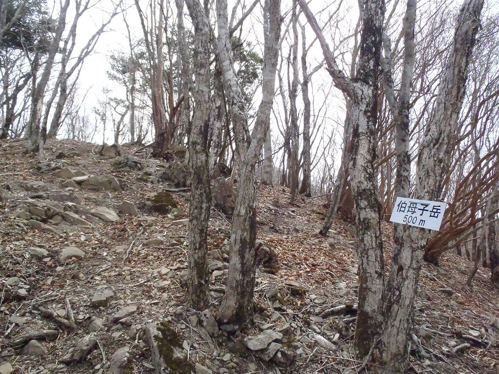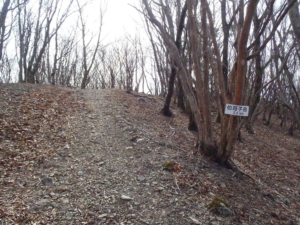 やっと見えた伯母子岳のピーク。左側のほうが高そうにみえるが、右側のピークが山頂