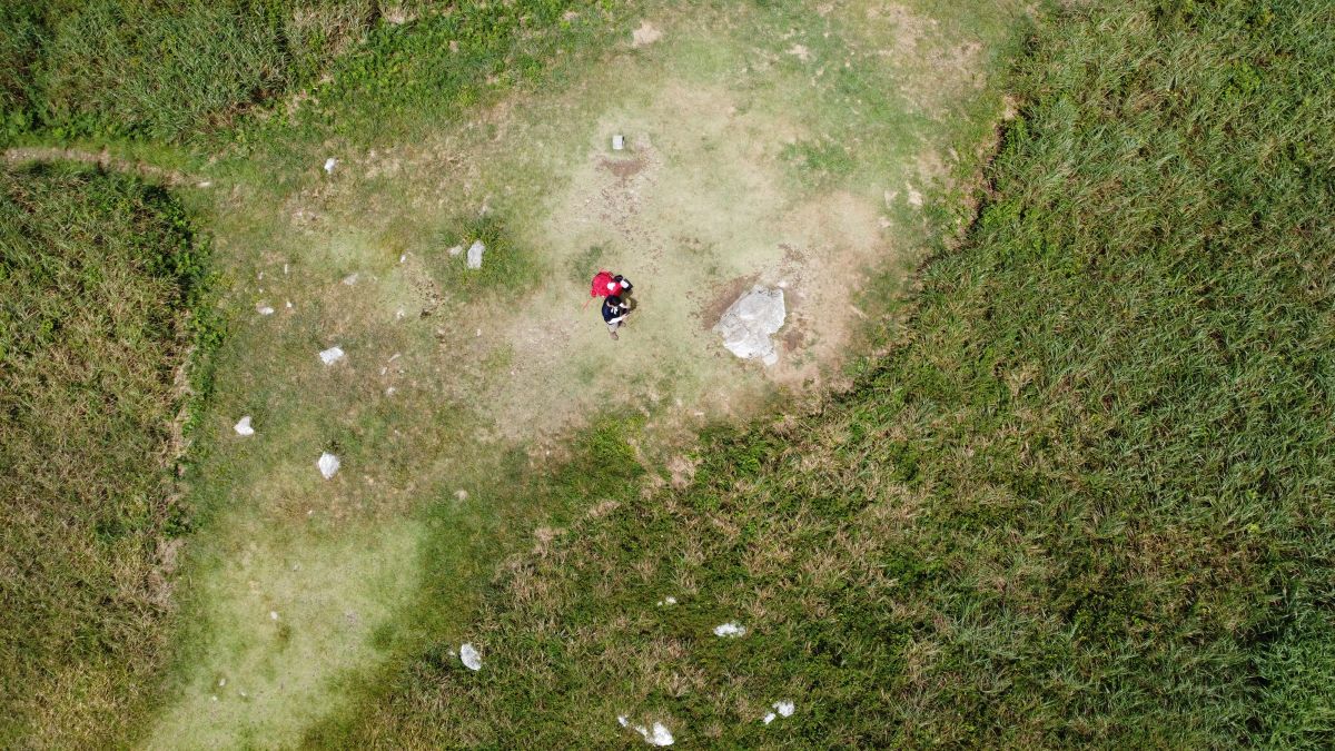 草原地帯を歩きながら時折風が吹いて気持ちいい。この後草原のピークあたりでもう一度ドローンを飛ばした