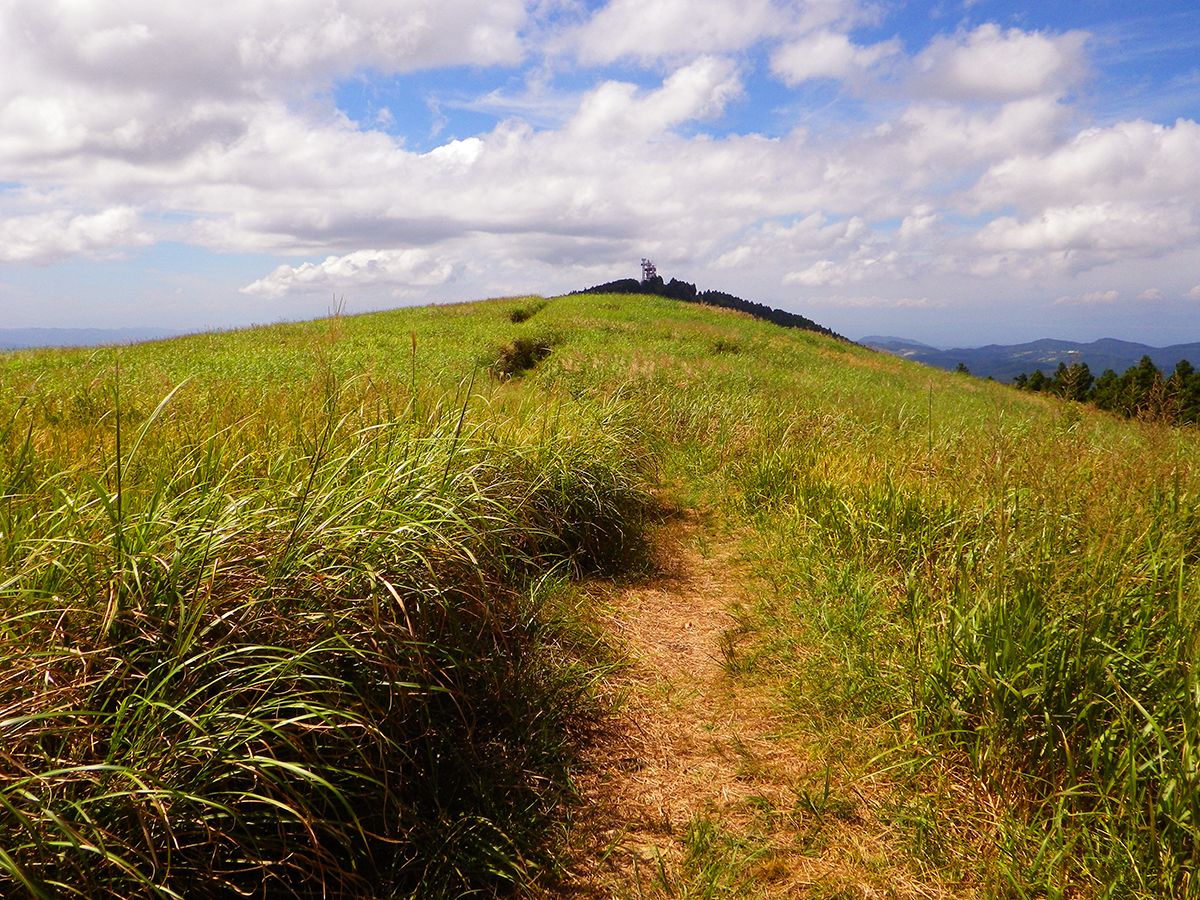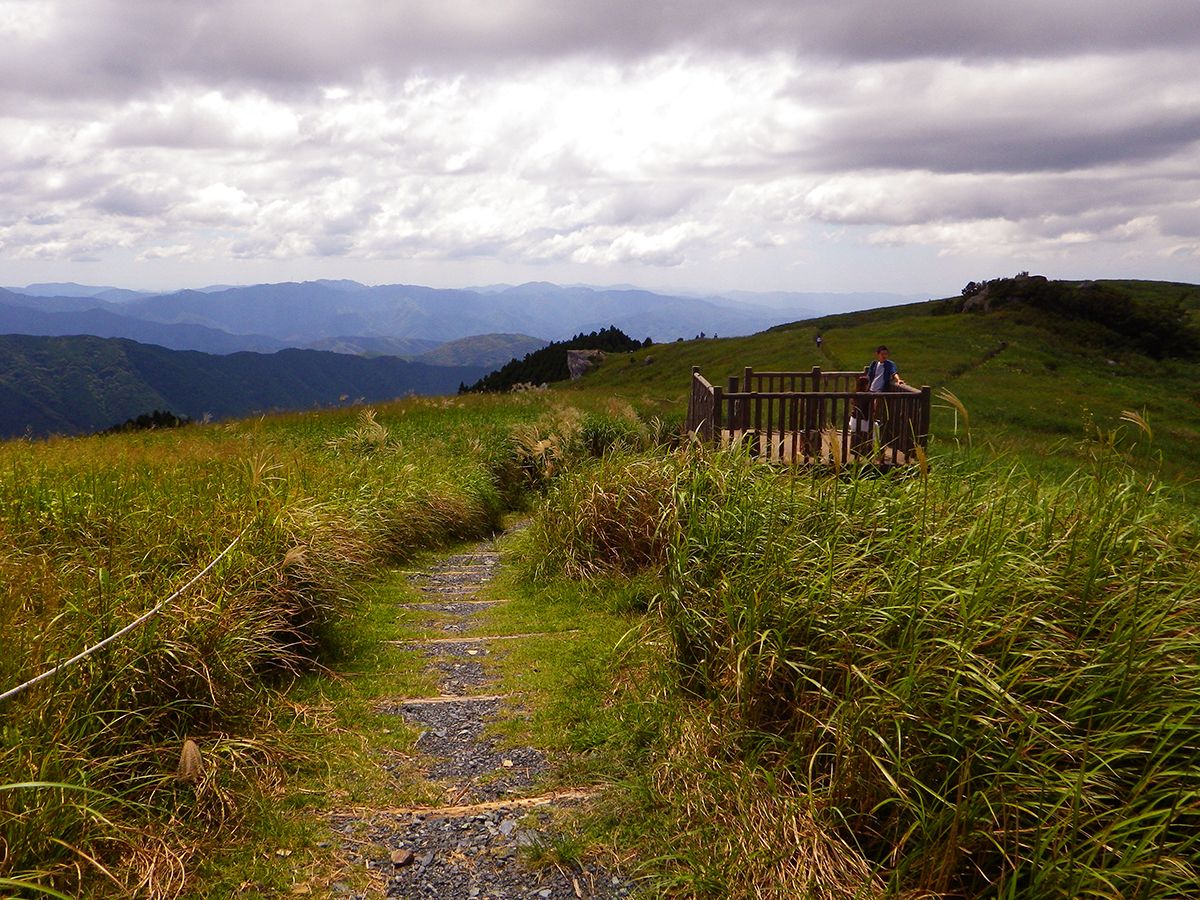 向こう側に見えてるピークが生石ヶ峰だろう。距離にして1kmと記載されていたけどそんなにあるかな!?