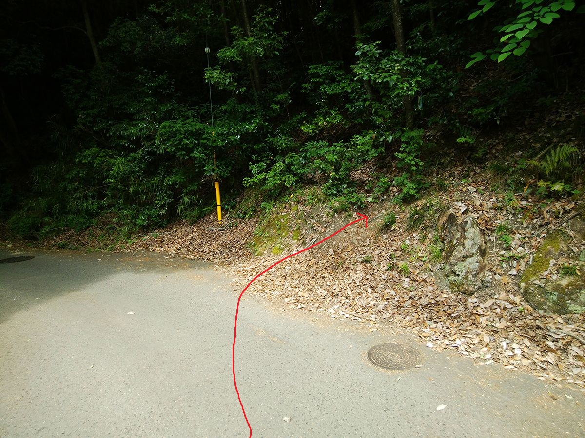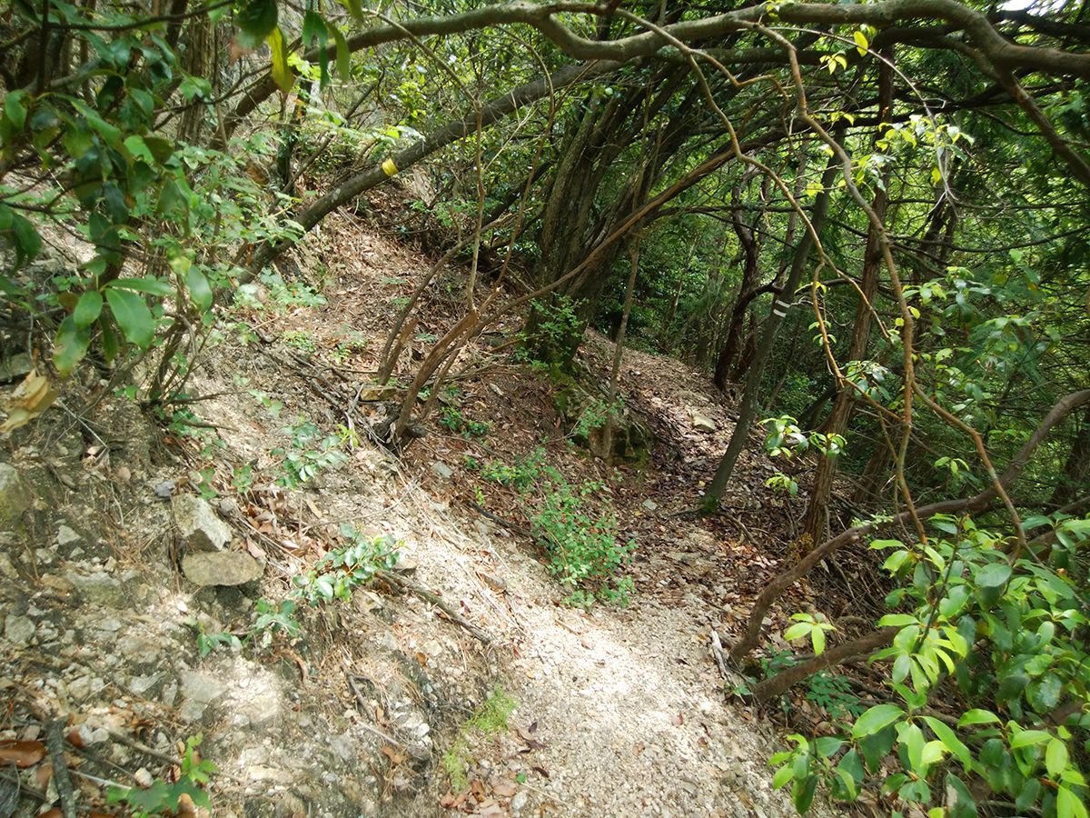 沢の音が聞こえてるから林道まで近いんだろうけど、かなりの急斜面で滑りやすかった。トラロープが設置されていて助かった