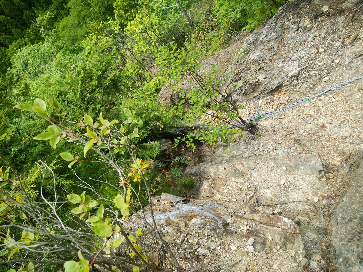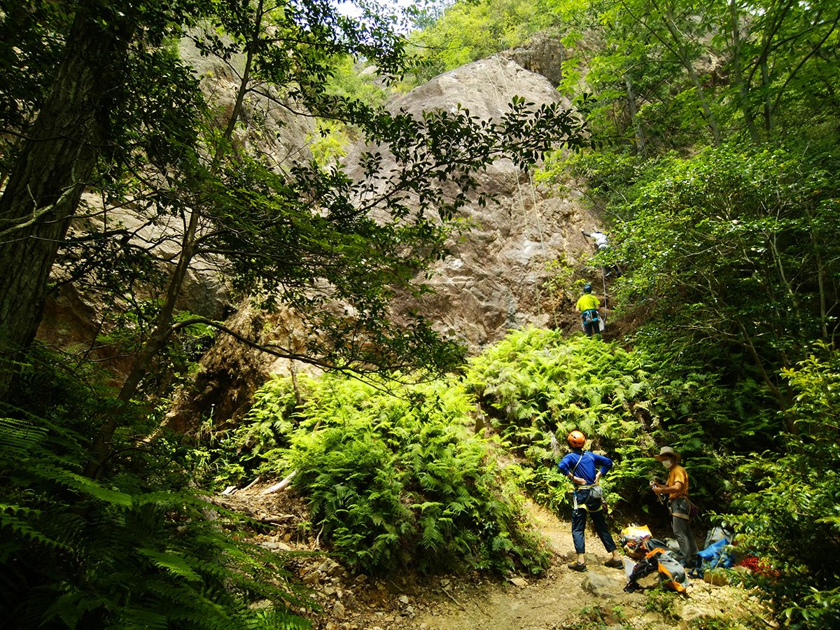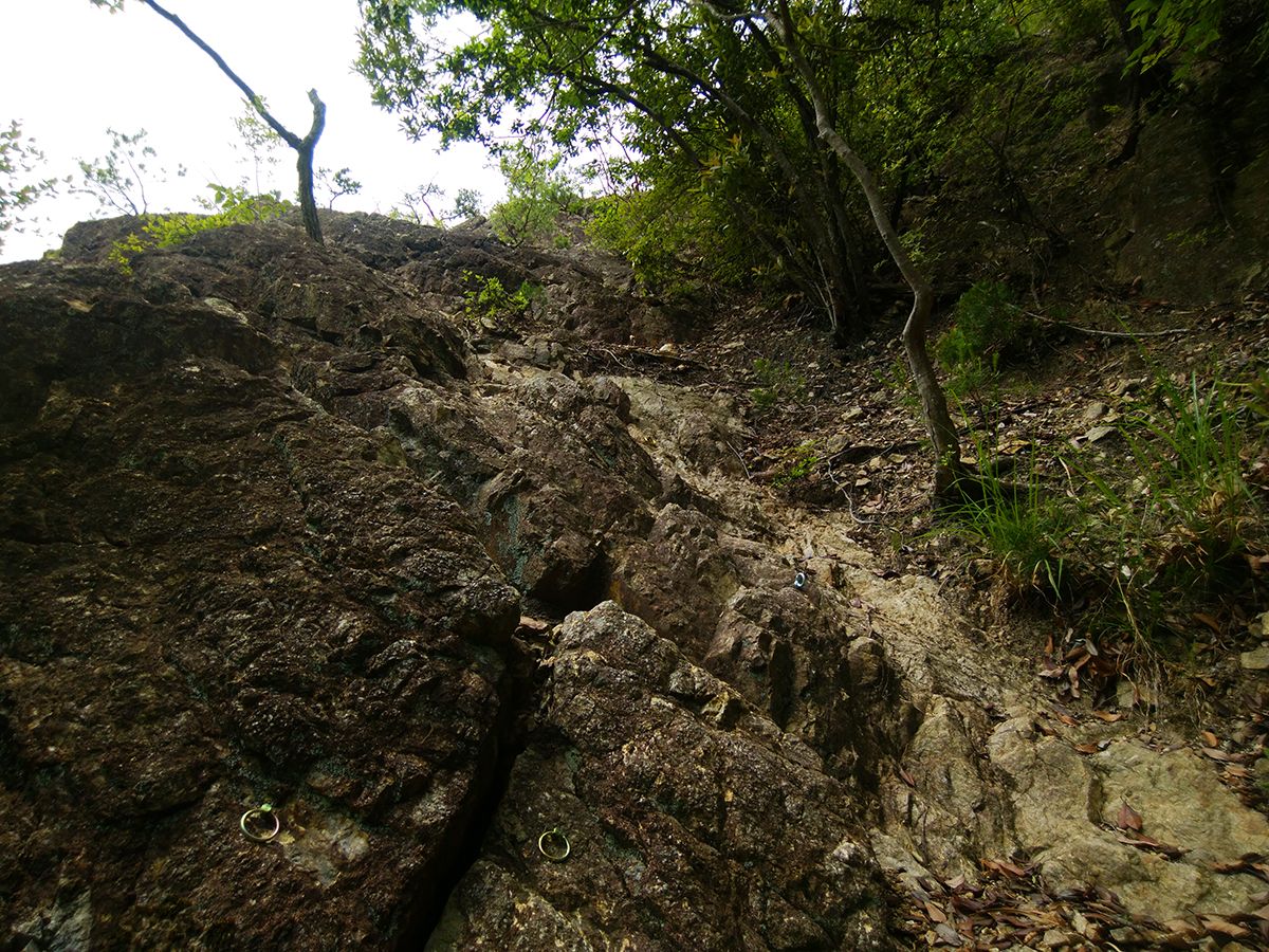 この岩場だと練習ポイントにちょうどいいかも。ちゃんとハンガーボルトもあちこちにある