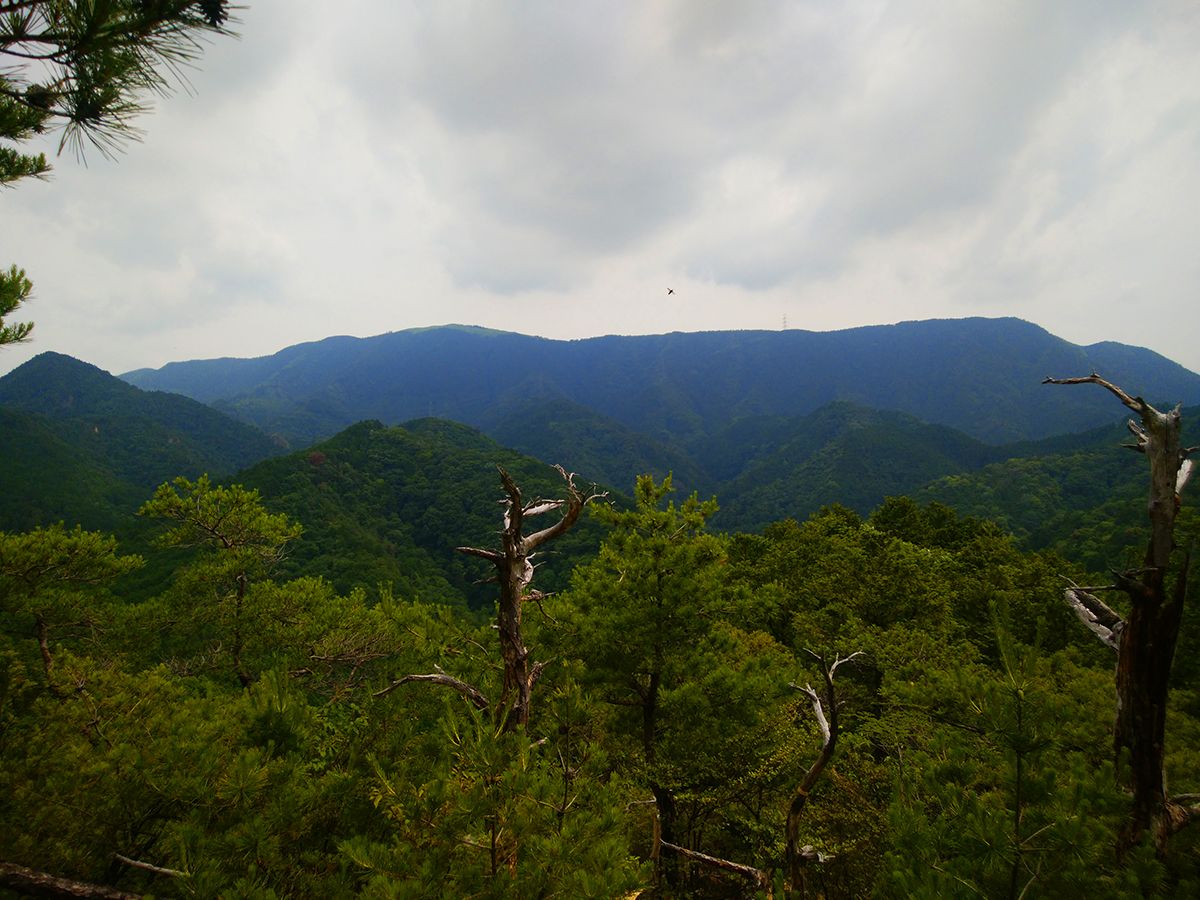 いい展望地にもなっている。左側のはげた山が岩湧山で編笠山も見える