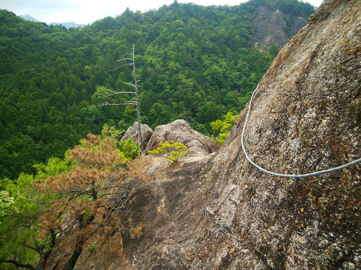 岩場のトップまで登ると今度は岩場を右にトラバースしていく