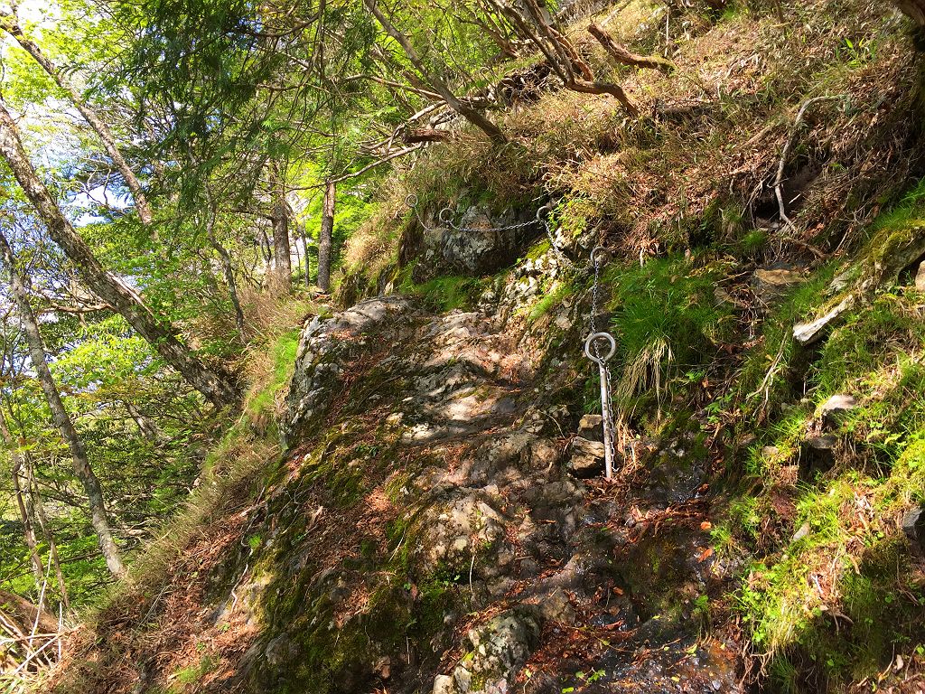 トラバースの鎖場。ここ積雪時はかなりヤバそうだ
