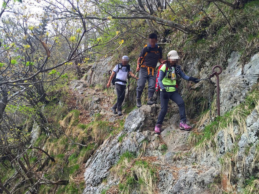 七曜岳の手前の鎖場。ここ以前は雪があって登るの大変だったのを覚えている