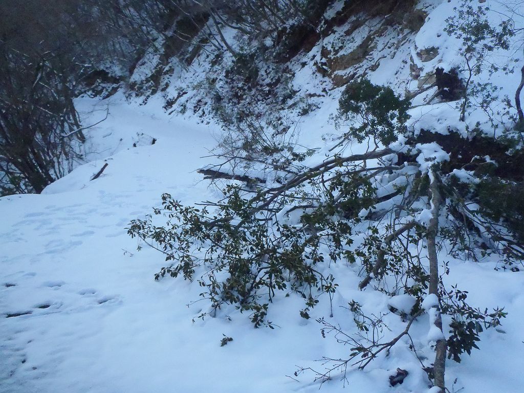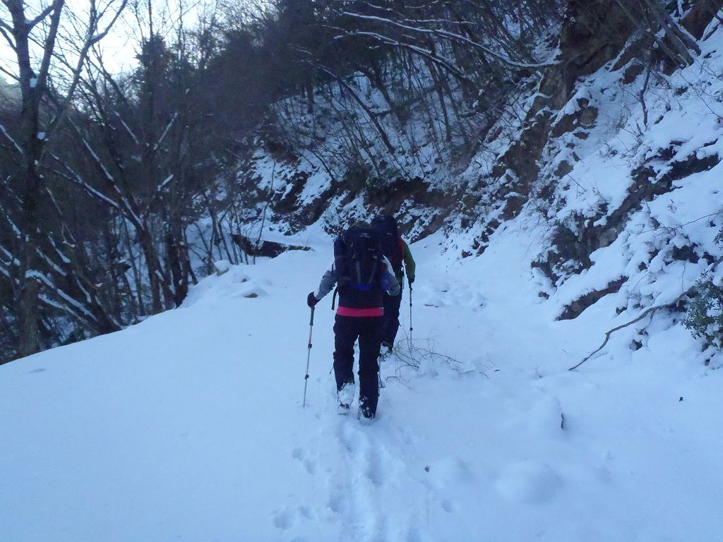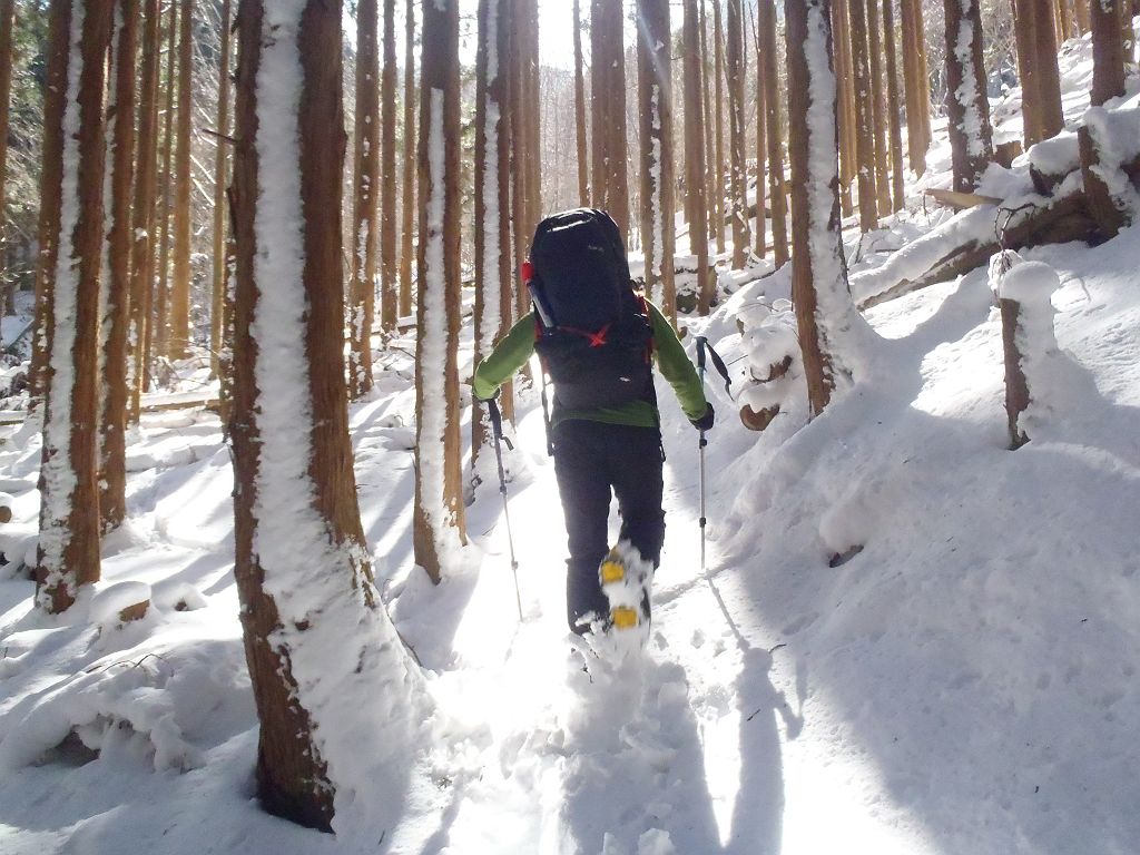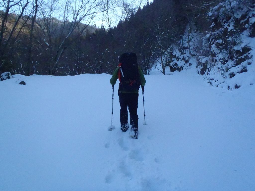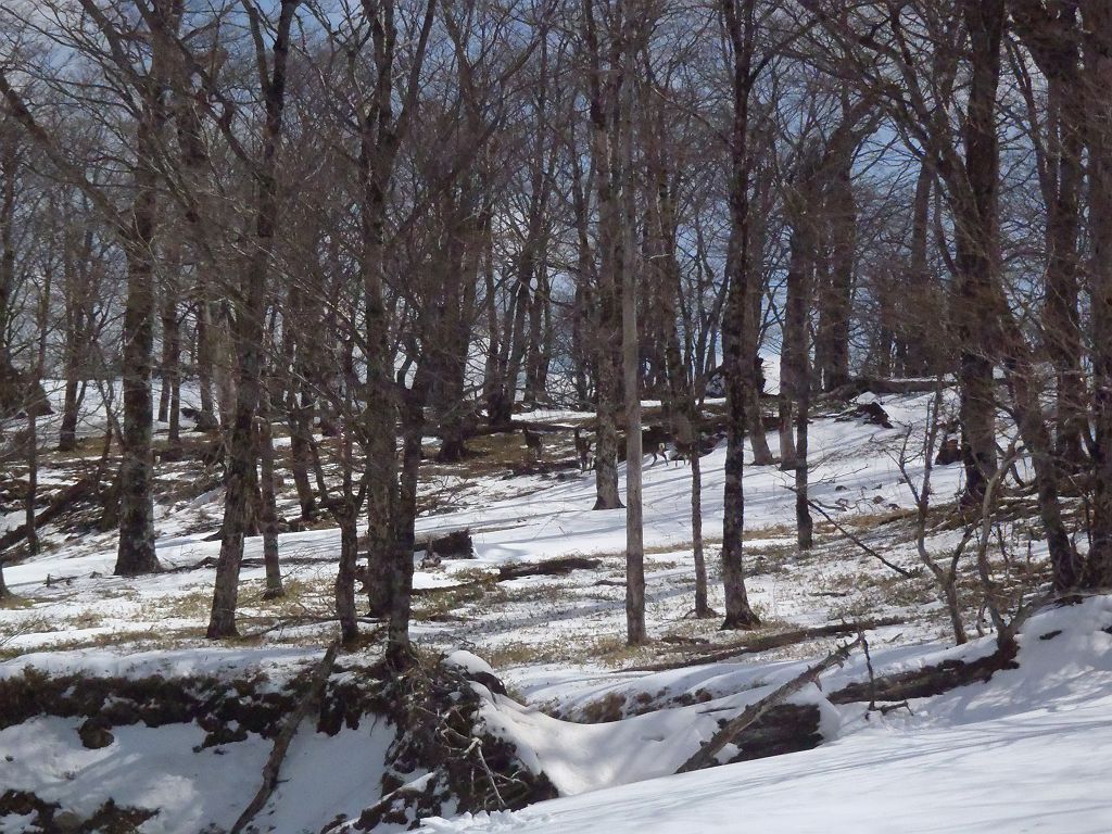 前々から積雪時に登りたかった大峰の釈迦ヶ岳。今年もあきらめていたところ前日、ユルケイ登山の登山好人さんからお誘いがあり、えれぇこったのbp-hiroさんとその奥さんえれぇこった2号のkakaさんの4人で急遽行くことにしました。2時間程度で登れる山なので余裕をかましていたところ林道が土砂崩れ?で崩落のため車が登れず、そこから歩くことになりました。積雪や凍結した林道を超ダルダルで登山道なんかより体力的はもちろん精神的にもなえました。登山口より沢筋を少し歩くとbp-hiroさんが、沢筋の正規ルートをとるか、尾根へ直登するバリエーションルートをとるか考えたところ直登ルートへ。無理矢理登るといった感じですが、やっぱ地図を見てあれこれ想定しながらルートを進むのは楽しい!!しかもこのルートに関しては冬だからこそできるのかもです。古田の森の尾根に合流したところで鹿の群れみて「可愛い」といってたのもつかのま、今度は重い雪のラッセル地獄。100m~200mほど進むごとに息切れ状態。雪の少ないところをあれこれ想定しながら進み、ヒィヒィいいながらなんとか古田の森へ到着。この段階でもはや正午と予想を大幅に上回っていました。そのまま千丈平へ向かいbp-hiroさんは何回も釈迦ヶ岳へ登っているのでここで食事の用意をして待っているとのこと。奥さんはダウン。十分に休憩をとったあとで、私と登山好人さんの二人で釈迦ヶ岳山頂へ向かいました。登りの最初はしんどいながらも進めていけましたが、「山頂まで0.2km」の道標の後の山頂直下は超深い雪で10m進むごとに立ち止まっていました。そして念願の積雪時の釈迦ヶ岳山頂に到着。展望も絶景、苦労して登ってきただけの価値がありましたし嬉しさの倍増でした。そして千丈平へ戻ると、美味しいすき焼きをいただきましたが、これがめちゃくちゃ美味しくて最高!!!その後、登山好人さんがもってきた大阪王将のチャーハンを焼いて食べましたが、これもめちゃくちゃ美味い!!!このチャーハンは間違いなくたくさんかって家においときます。下山時は古田の森の登り返しがしんどかったですが、その後は早かったように思いました。そして「おつかれさまでした」との道標を見て林道へ。ここからあの長い林道をまた歩くのかと思うとなえましたが、下りなので少しは楽でした。想定外のことがあった山行でしたが、釈迦ヶ岳も登れてよかったのと、苦労したこともあったのでいい経験になりました。今回はあなどって装備をもっていかずでしたが、ワカンがあればもう少し楽だったと思います。