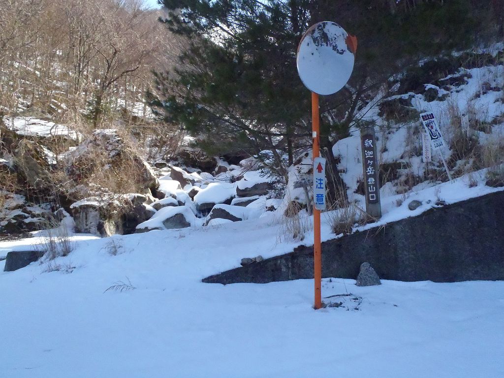 林道を歩くこと1時間30分でここ。アプローチ予定だった登山口はあと1.5km林道を歩くが・・・
