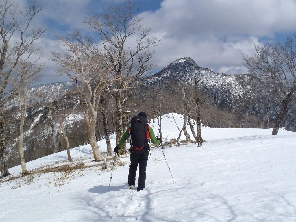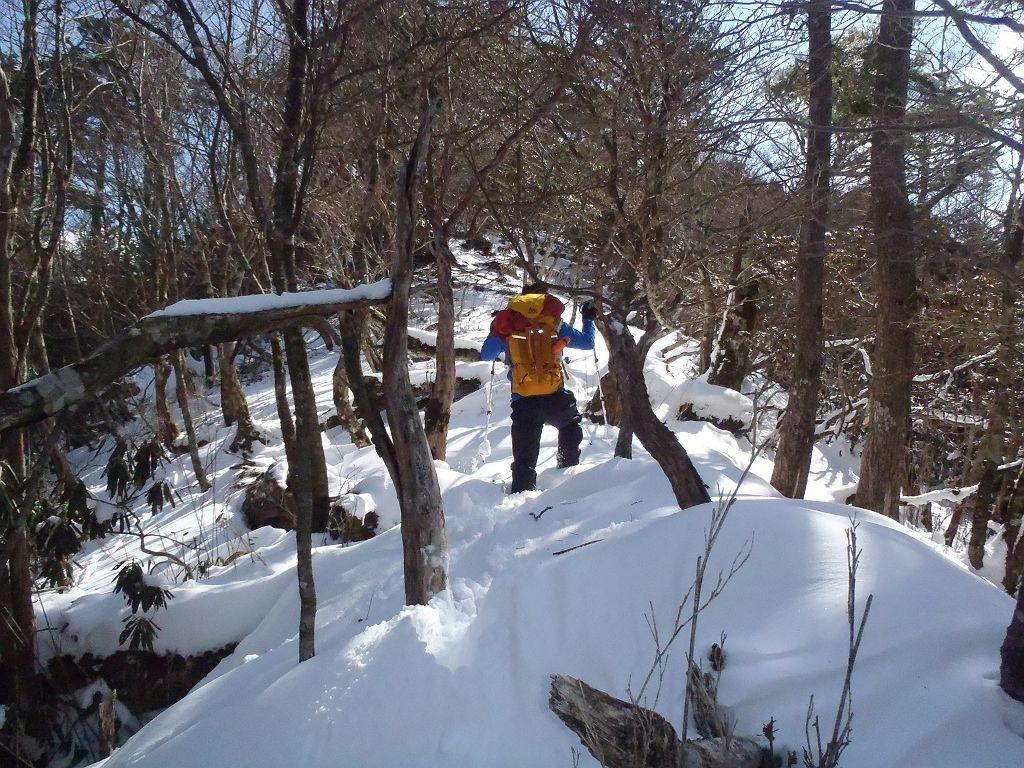 息切れしながらもがんばってくれている登山好人さん。簡単に登れるピークでも雪が重く深ければかなりしんどかった