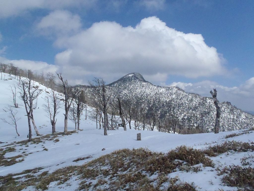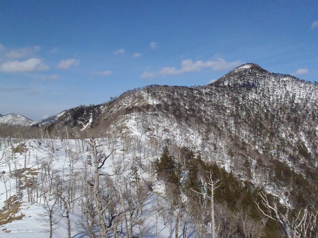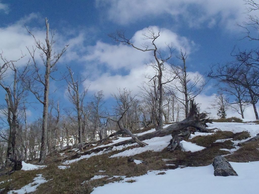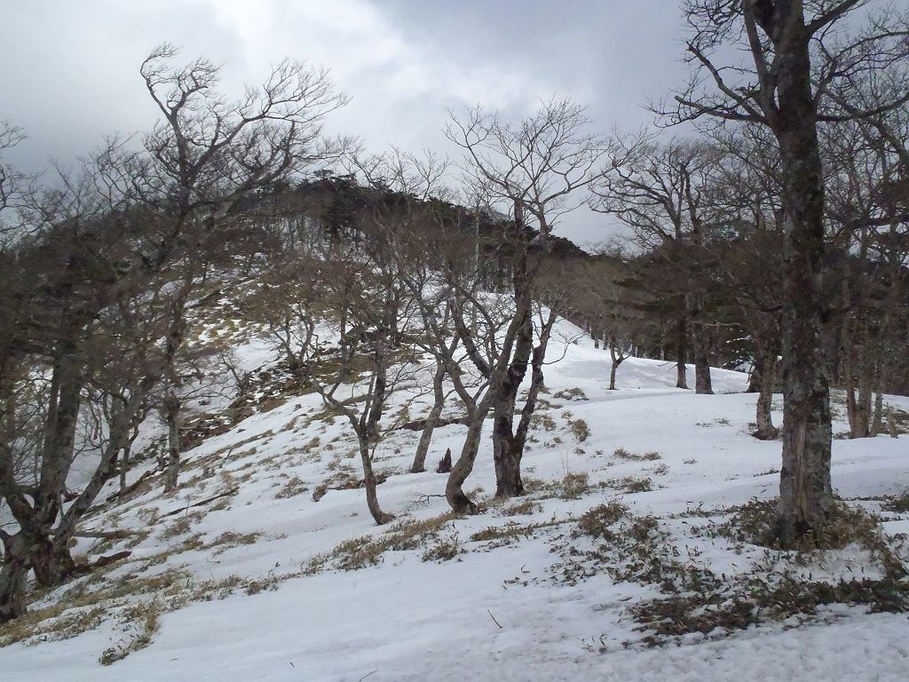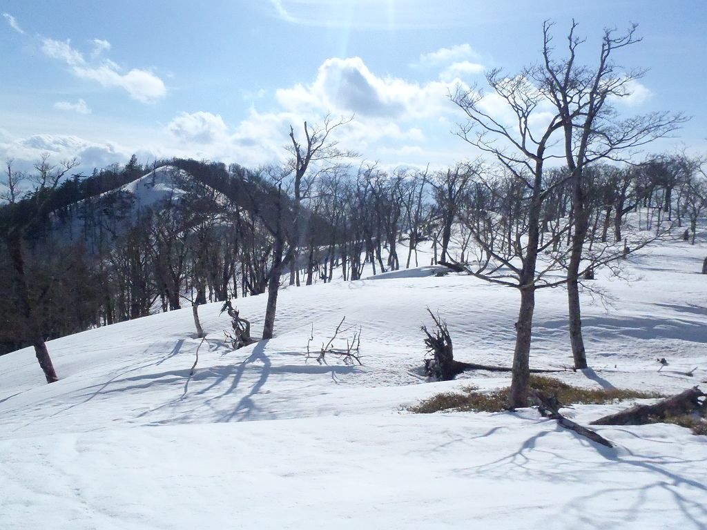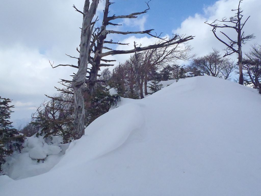 ようやく山頂が見えてきたが、雪にズボズボはまりながら息切れ状態