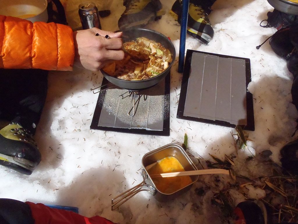 千丈平へ戻りすき焼きを食べる。山で食べるすき焼きめっちゃ美味しい!!