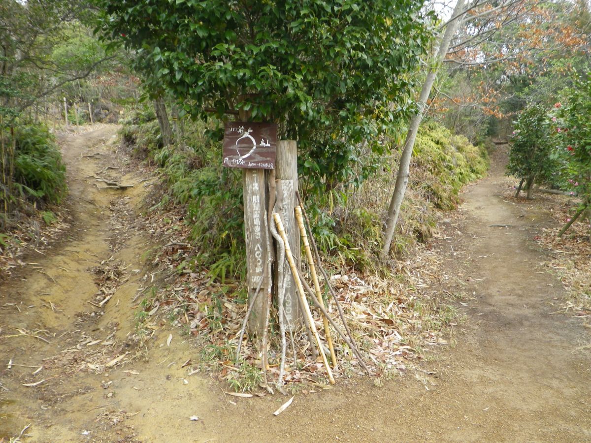 惣山から0.4kmだけどかなり下らされた。ここを左に行って紅山へ登ることにした