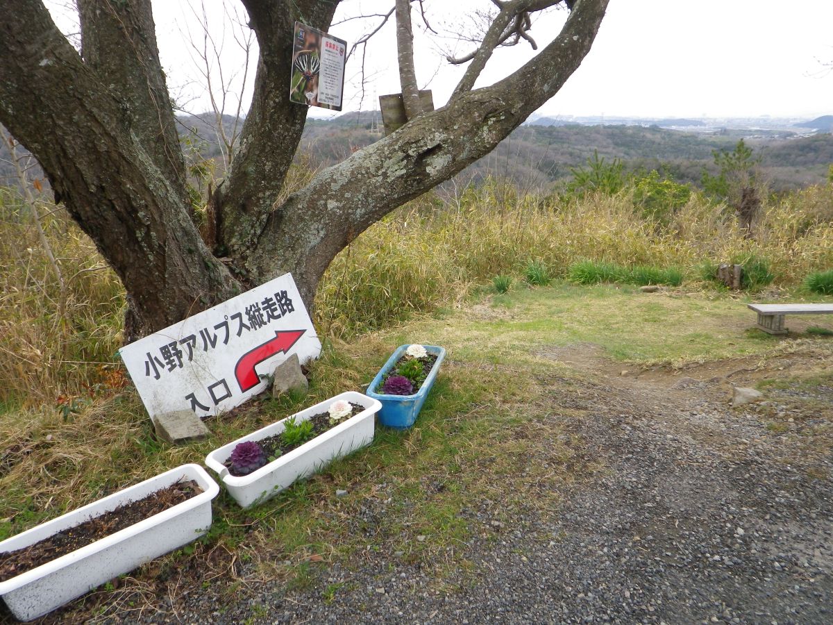 日本一低い小野アルプスについての説明がかかれた案内板があった。全長は15.1kmで約5時間が標準コースタイムなのか!?