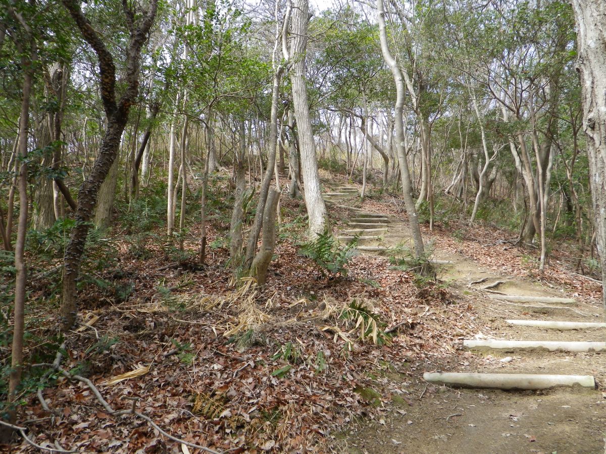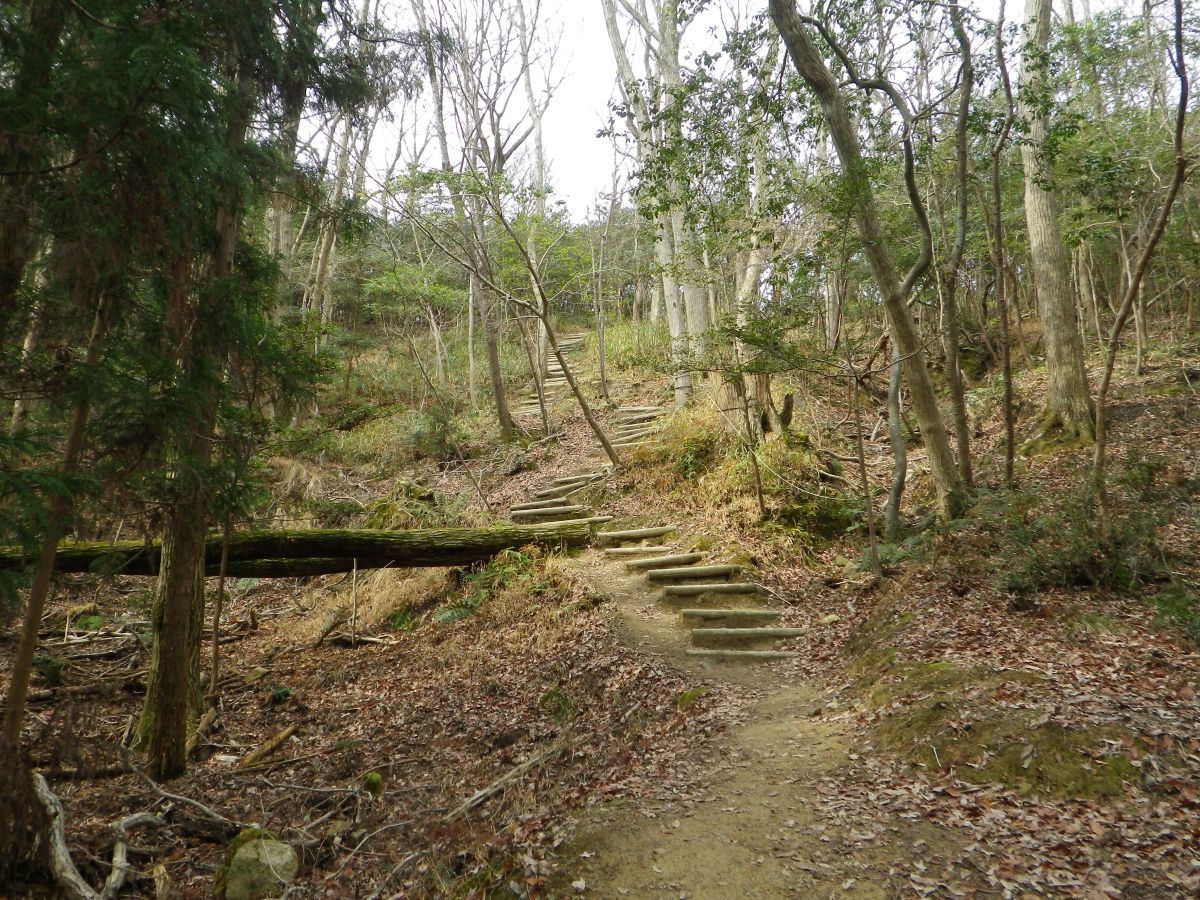 続いて三番目の愛宕山に到着。標高154mだけど、ここまでは余裕だった。しかし、ここからまた下らされた