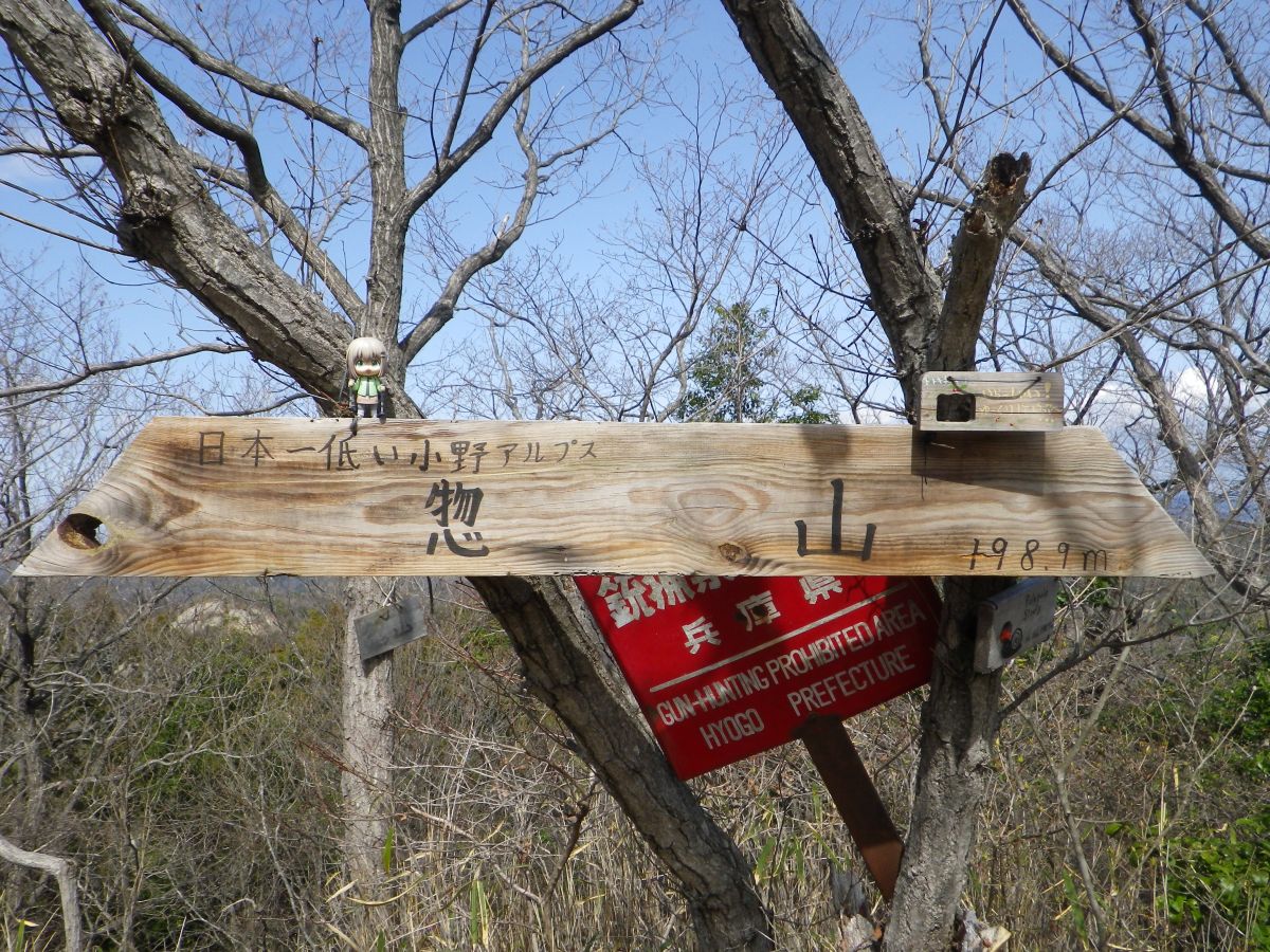 小野アルプス最高峰の惣山ということで、せっかくなので雪村あおいちゃんを撮影しておいた。日本一低い小野アルプスと書かれてるのもいい感じだね